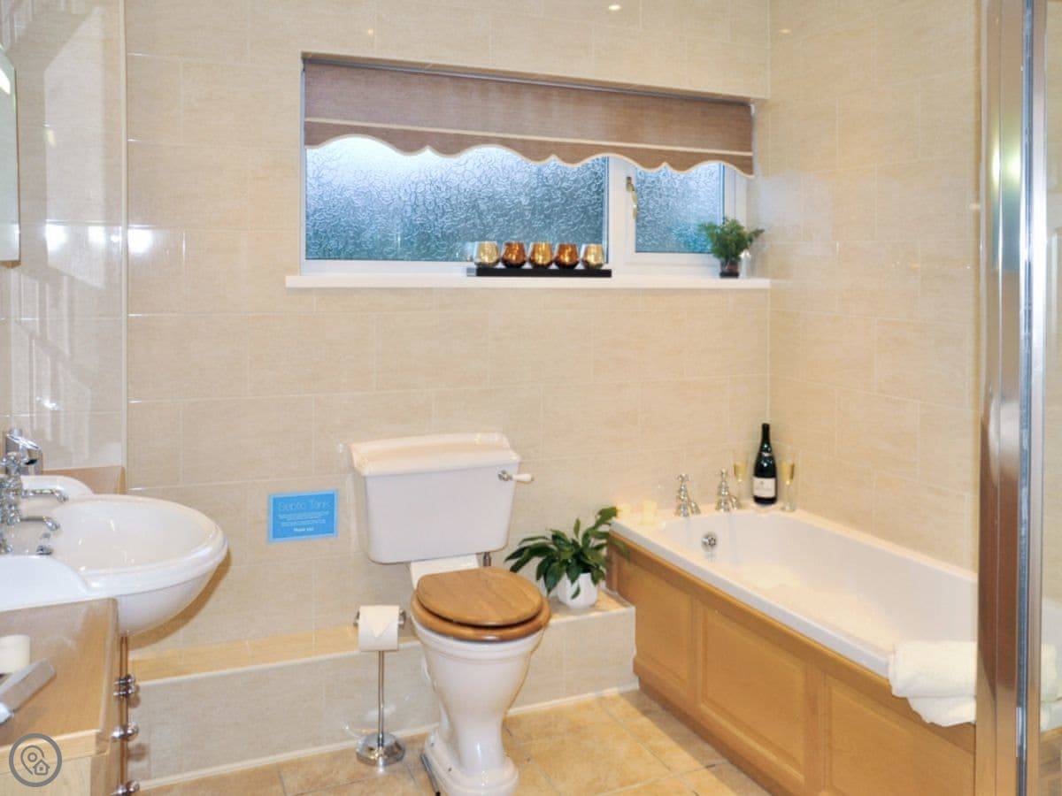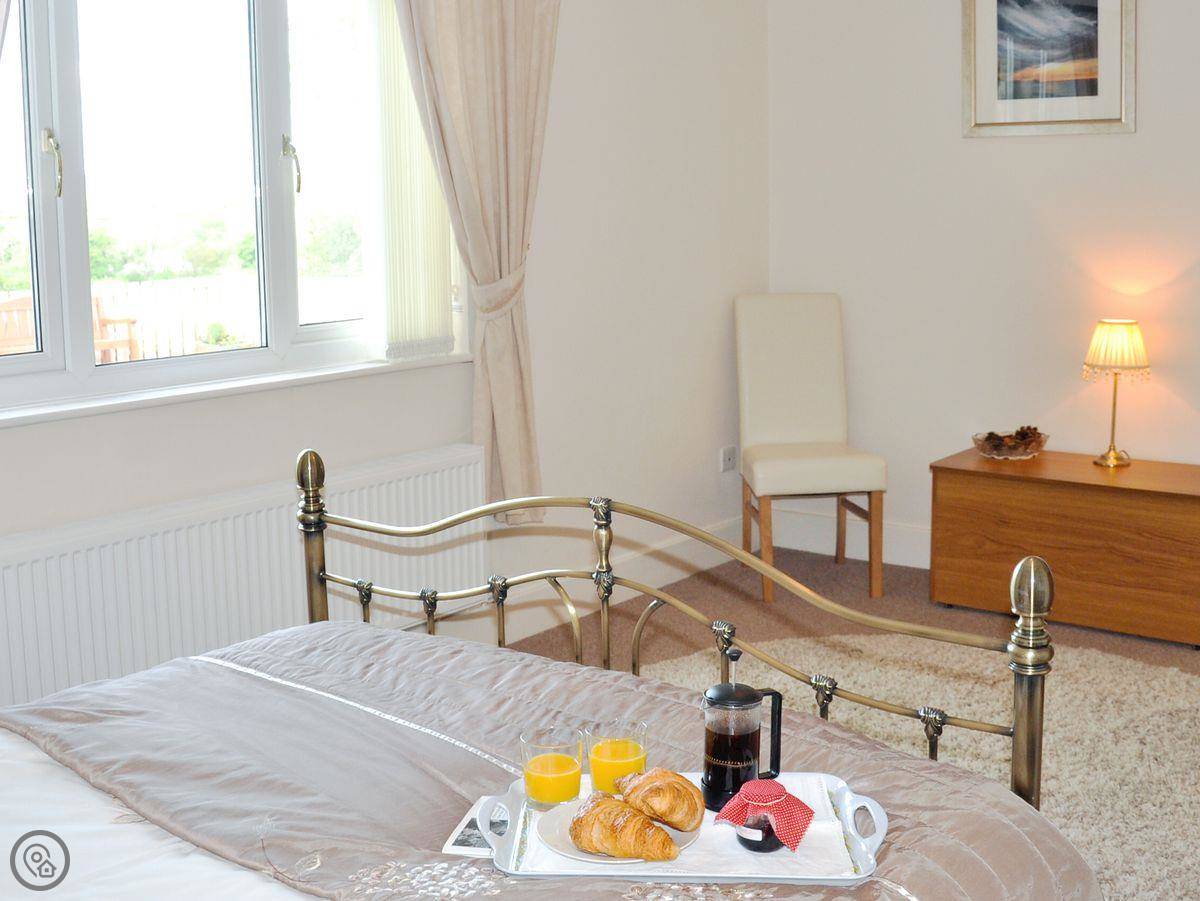 It sleeps six people. Three bedrooms, two bathrooms. One bedroom and one bathroom are on the ground floor, which is handy. There's a ramp at the entrance if you need it. It's got a 4 Star rating, so it's comfortable and well-equipped.
