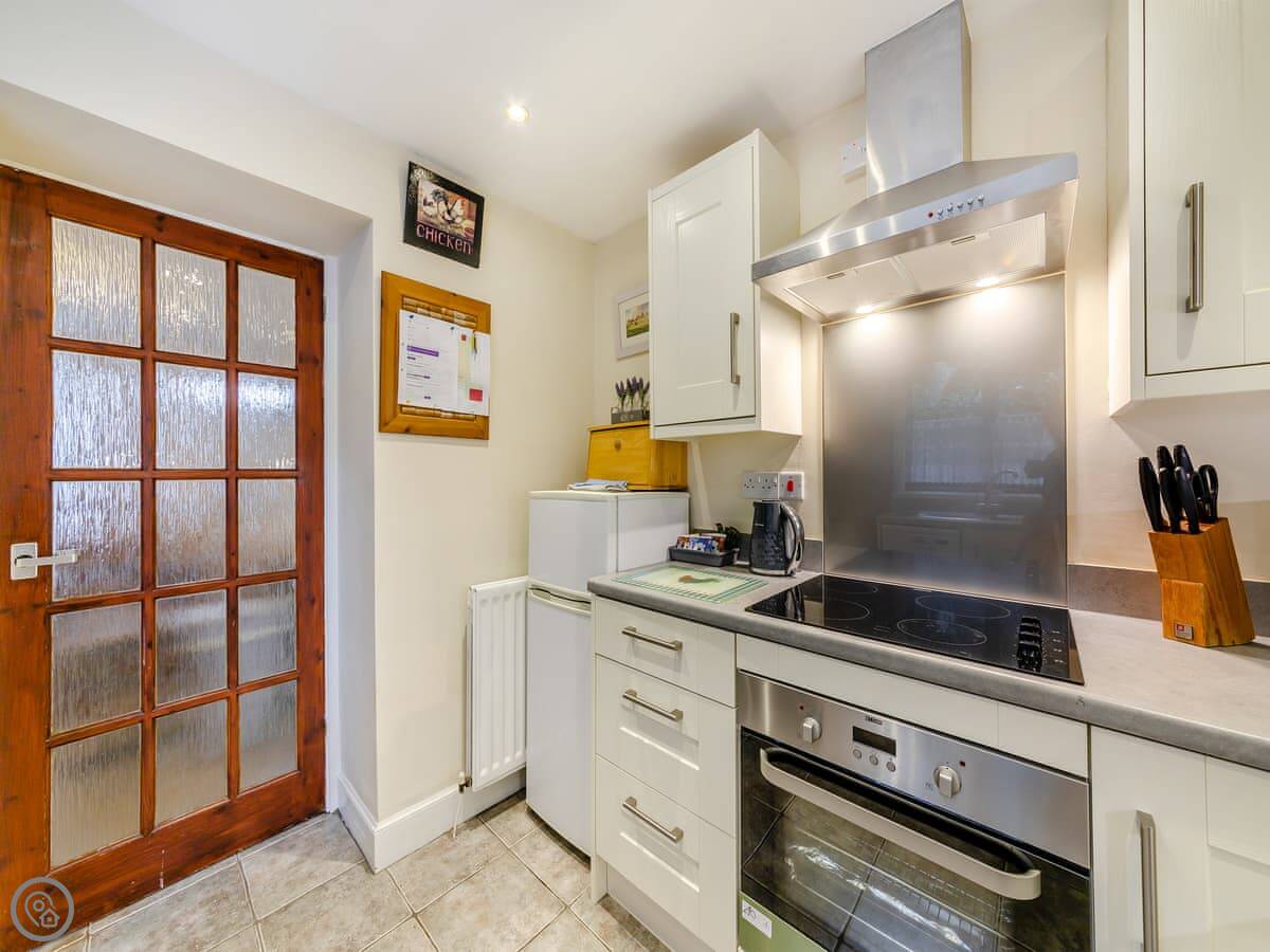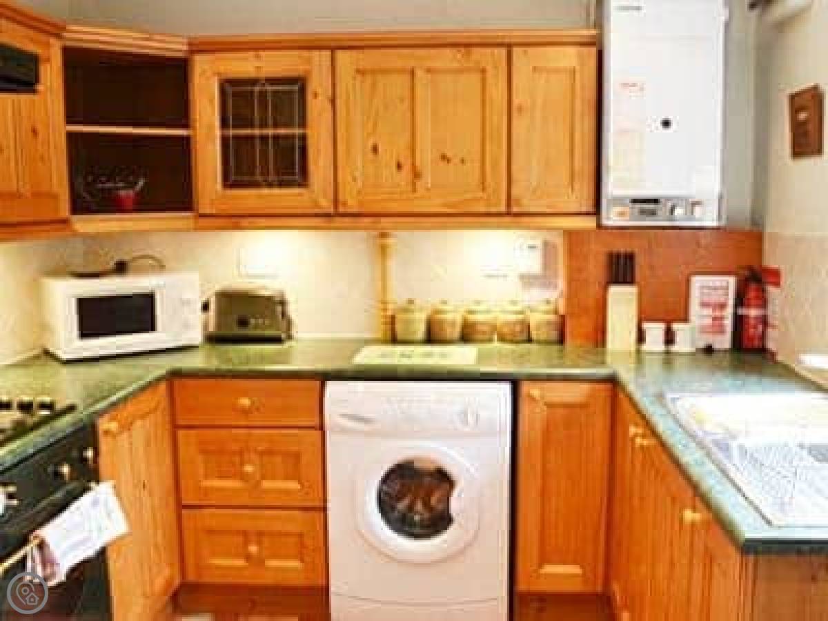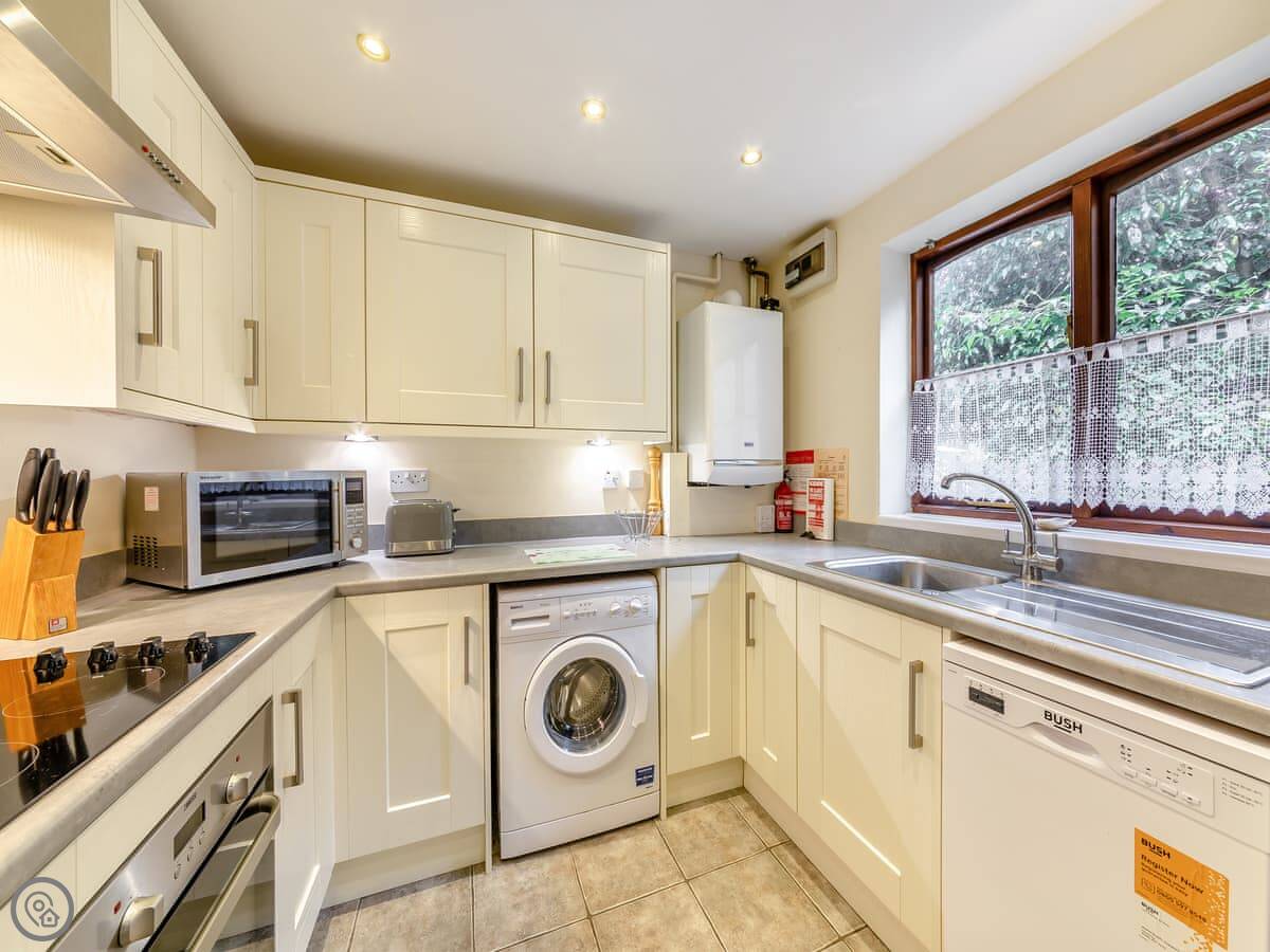 For facilities, you've got a washing machine, a cot and a highchair if you need them, bedding and towels are included, and there's parking for one car on site. You can bring one well-behaved dog.