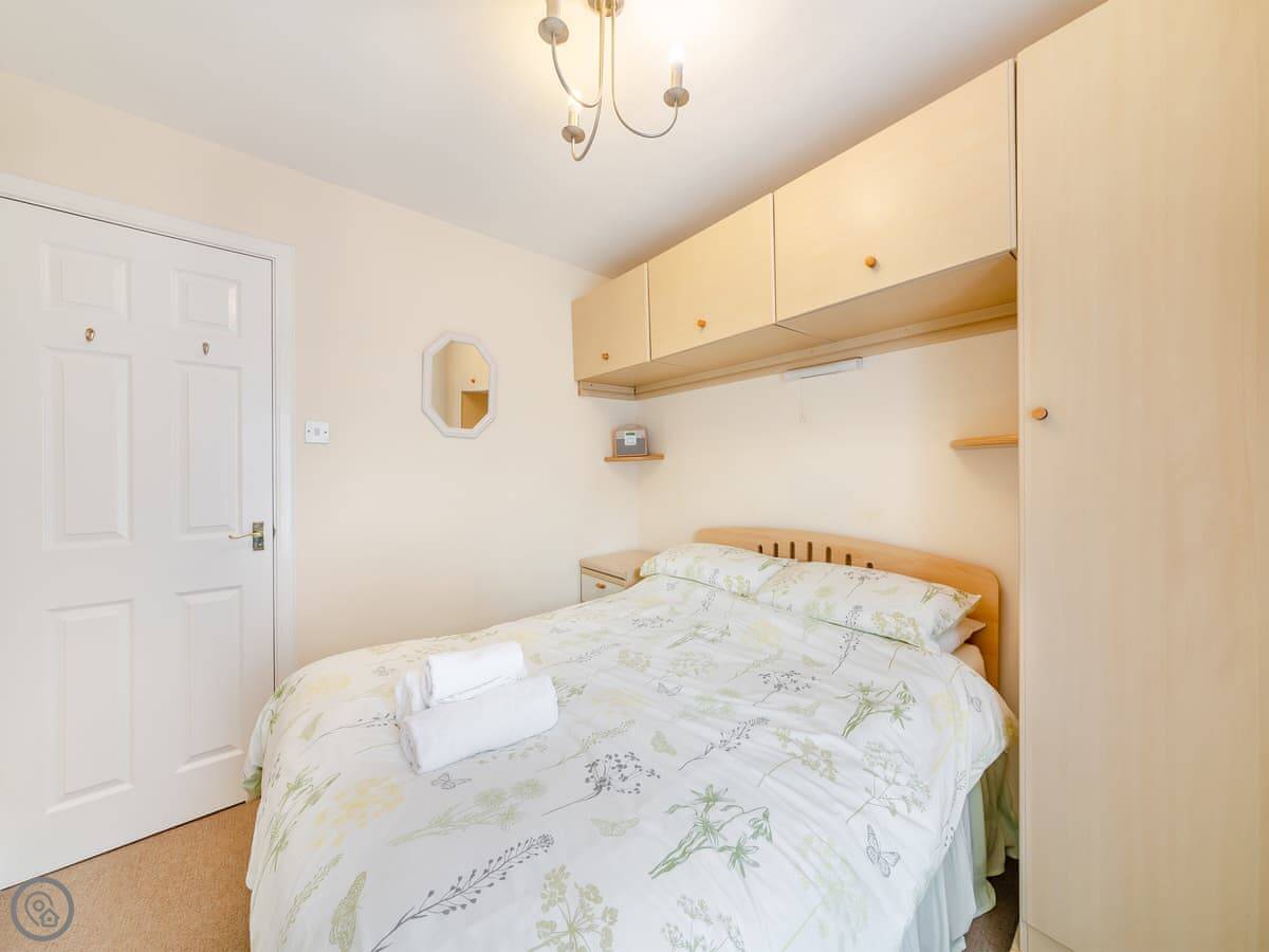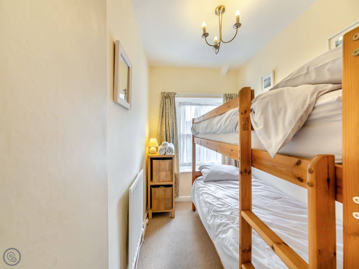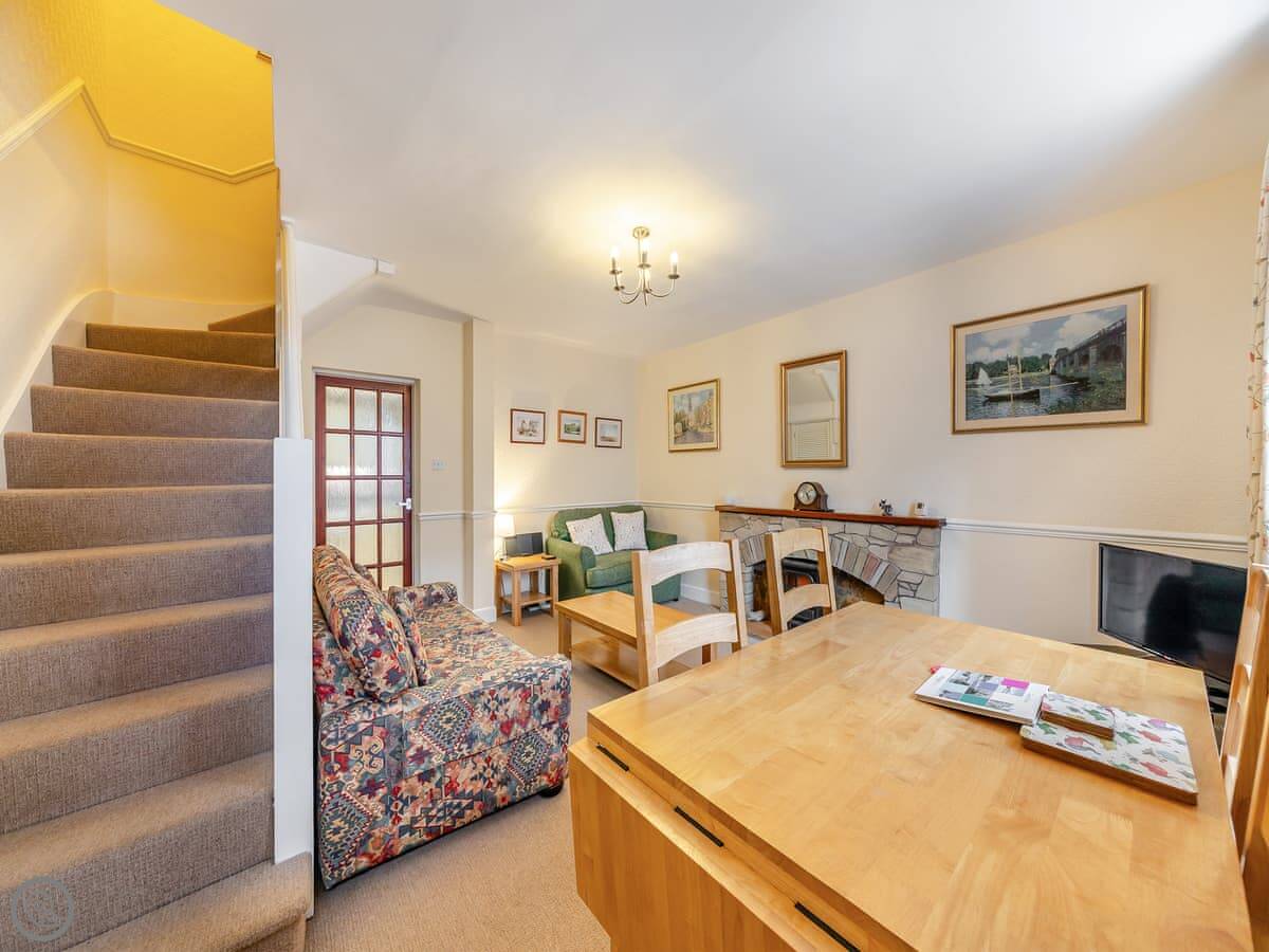 It sleeps four. Two bedrooms and one bathroom upstairs. It's got a 3 Star rating, so it's comfortable and clean, not luxurious. The stairs are a typical cottage staircase, so mind your head.