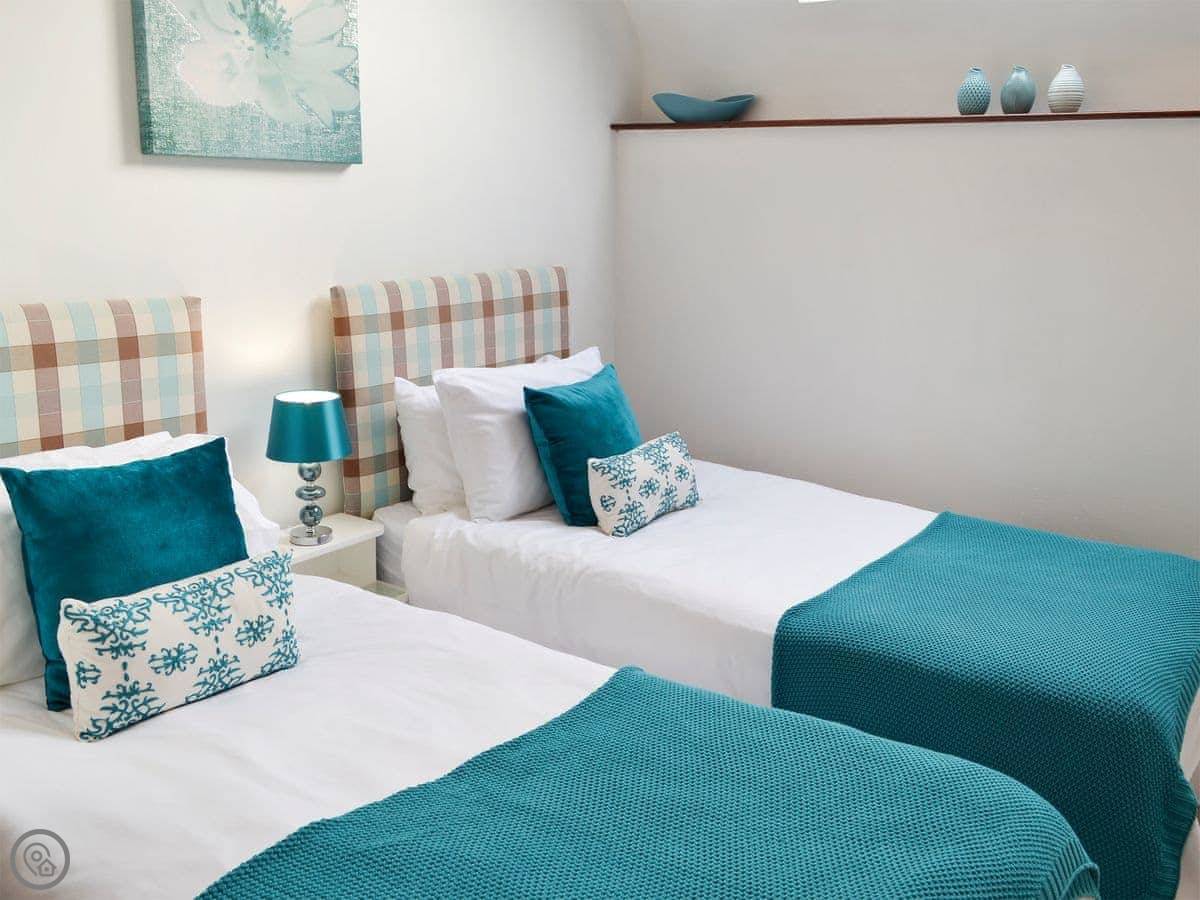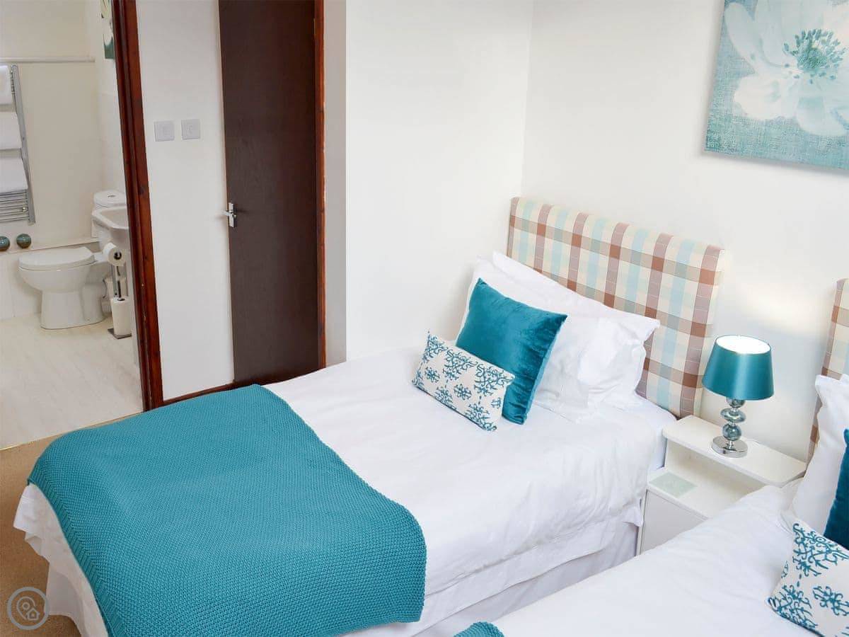 It sleeps four in two bedrooms, and both bedrooms have their own bathrooms. It’s got a 4 Star rating, so it’s comfortable and well-equipped. It’s all on one floor, which is handy.