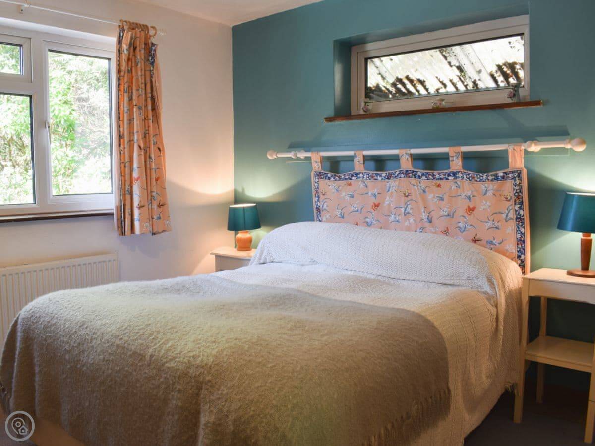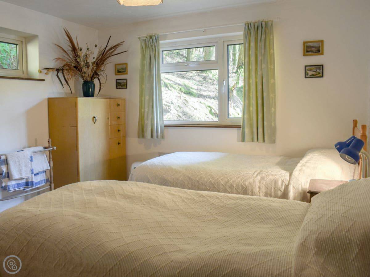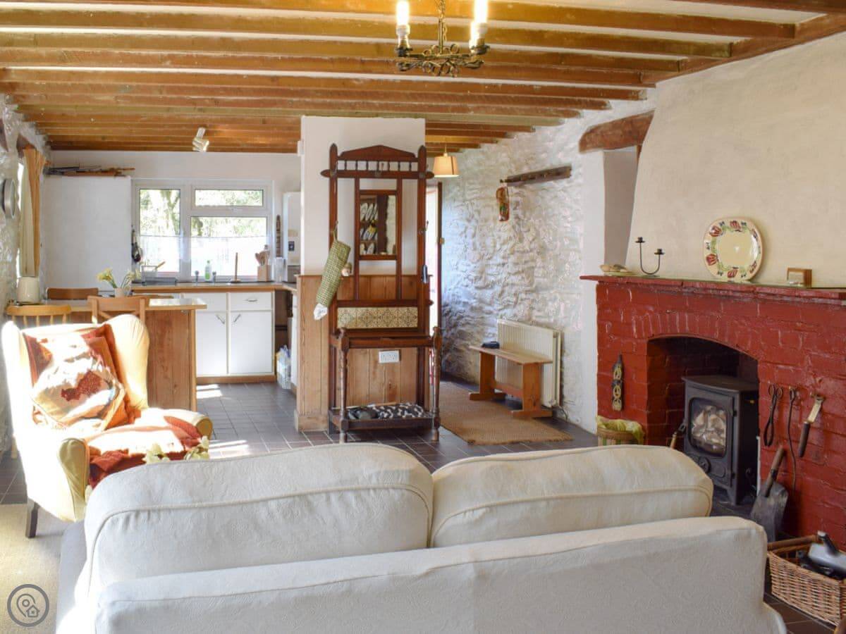 It sleeps four people. Two bedrooms and one bathroom. It's got a 3 Star rating, which is fair. It's clean and comfortable, not luxurious. Everything is on one level, which is good. There's a wood burner in the living room. It gets the place warm quickly.