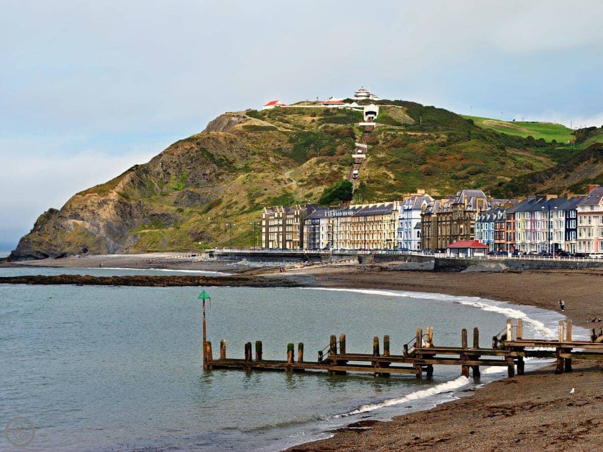 Aberystwyth is about a twenty minute drive. It's a university town on the coast. There's a castle ruin, a pier, and the normal shops. The Cardigan Bay coastline is all along there. You might see dolphins from the shore if you're lucky.