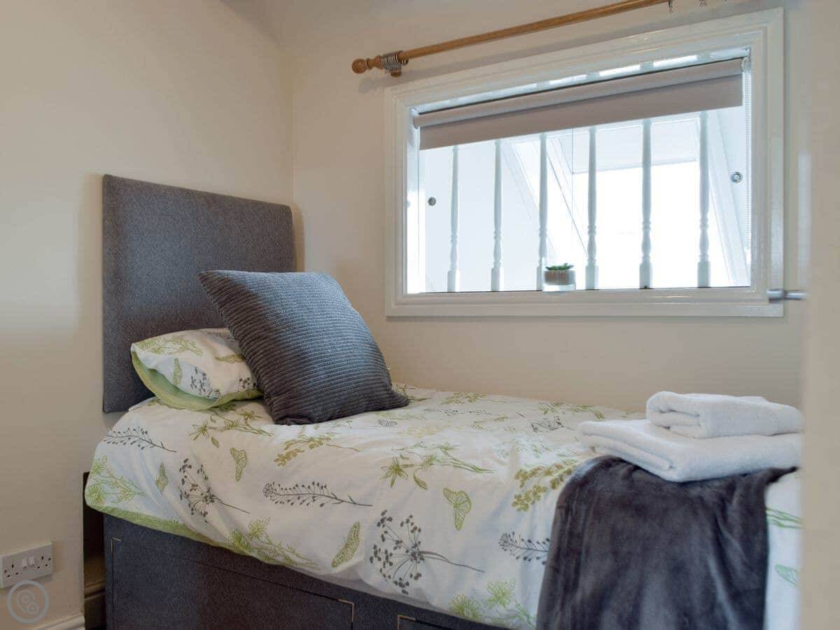 It sleeps four. There are three bedrooms and one bathroom. It's graded 4 Star, so it's comfortable and well-equipped. The garden is enclosed.