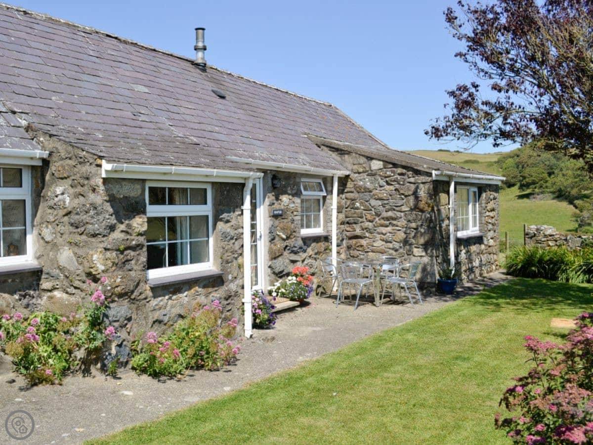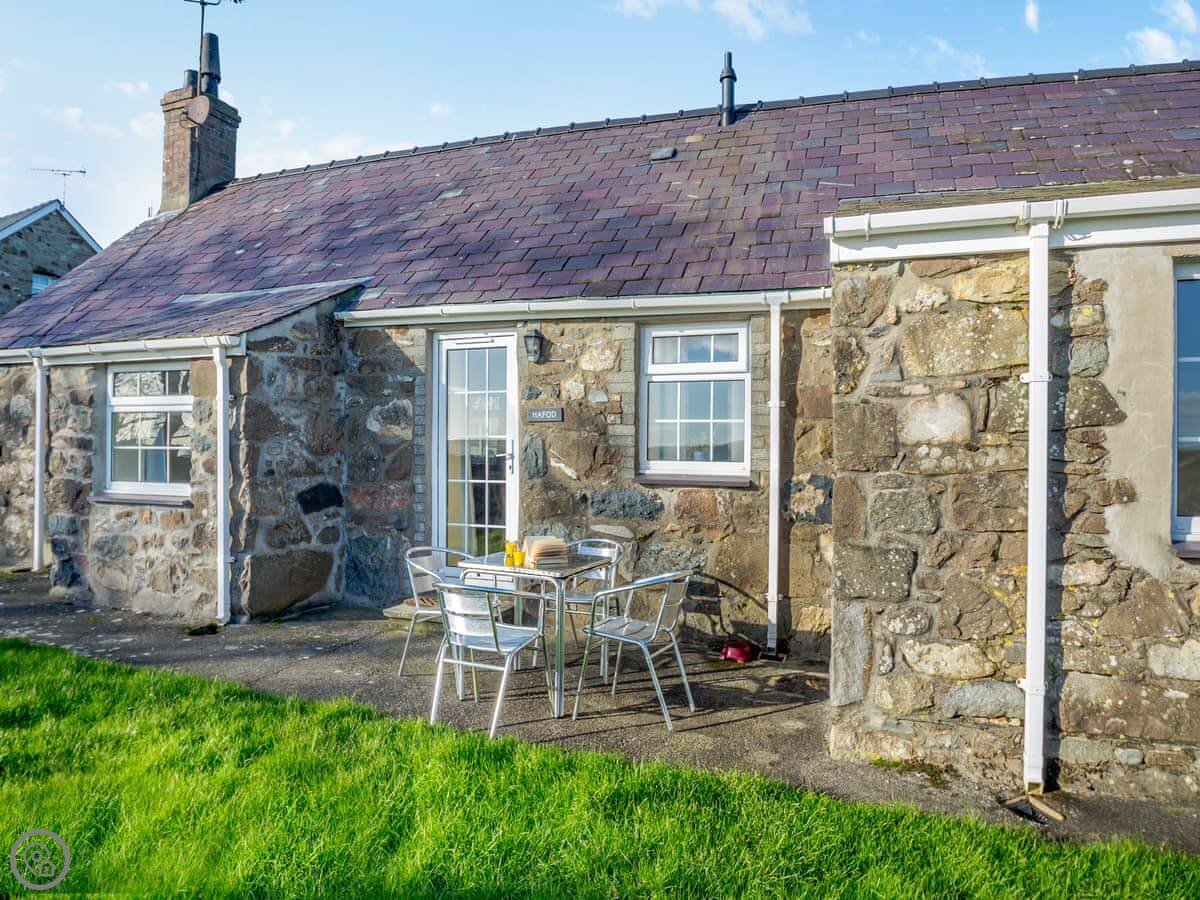 This is Hafod. It's a barn we converted on the family farm in Llangian. It's detached, so no one attached to the sides. You get the garden to yourselves, it's enclosed and looks out over the fields.