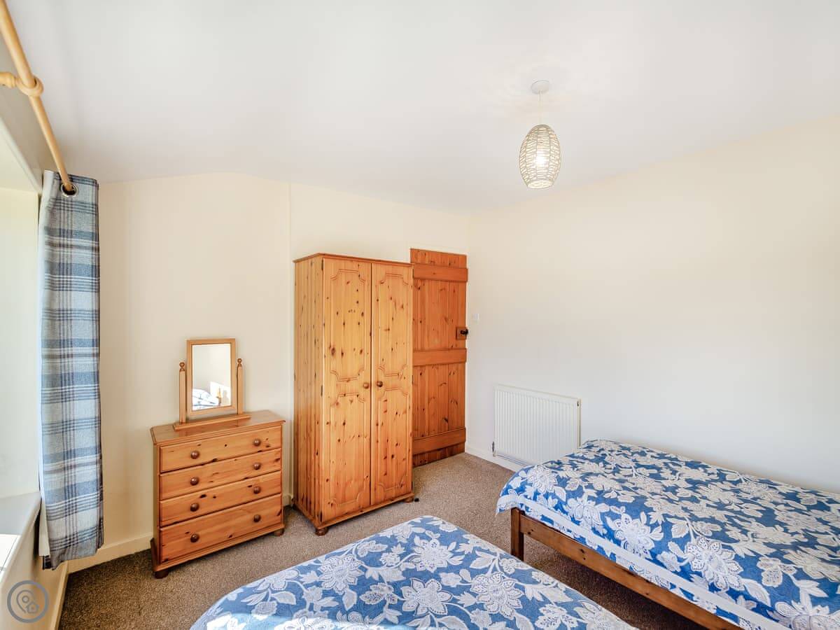 It sleeps four. Two bedrooms and one bathroom with a shower. The rating is 4 Star. It's comfortable, but it's a farm building so the ceilings are low in a couple of places. Tall people need to watch their heads going into the bedrooms.
