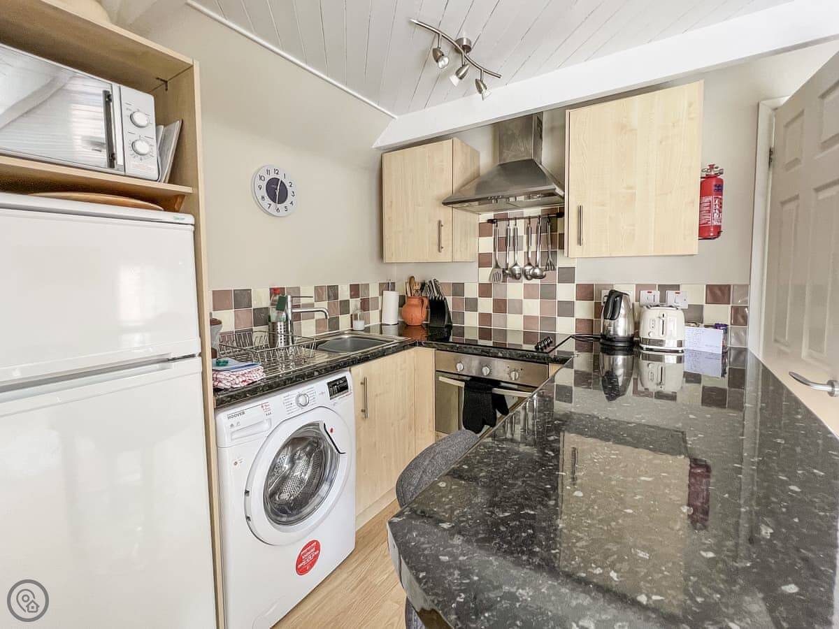 For facilities: there's a washing machine, WiFi, TV, and parking on site. Bedding and towels are included. We can provide a cot and highchair. You can bring up to two dogs.