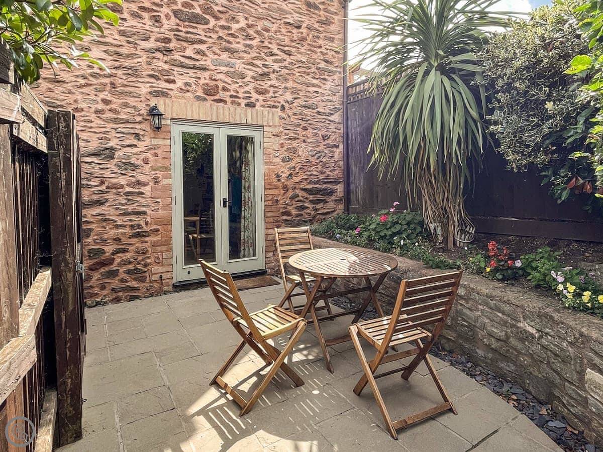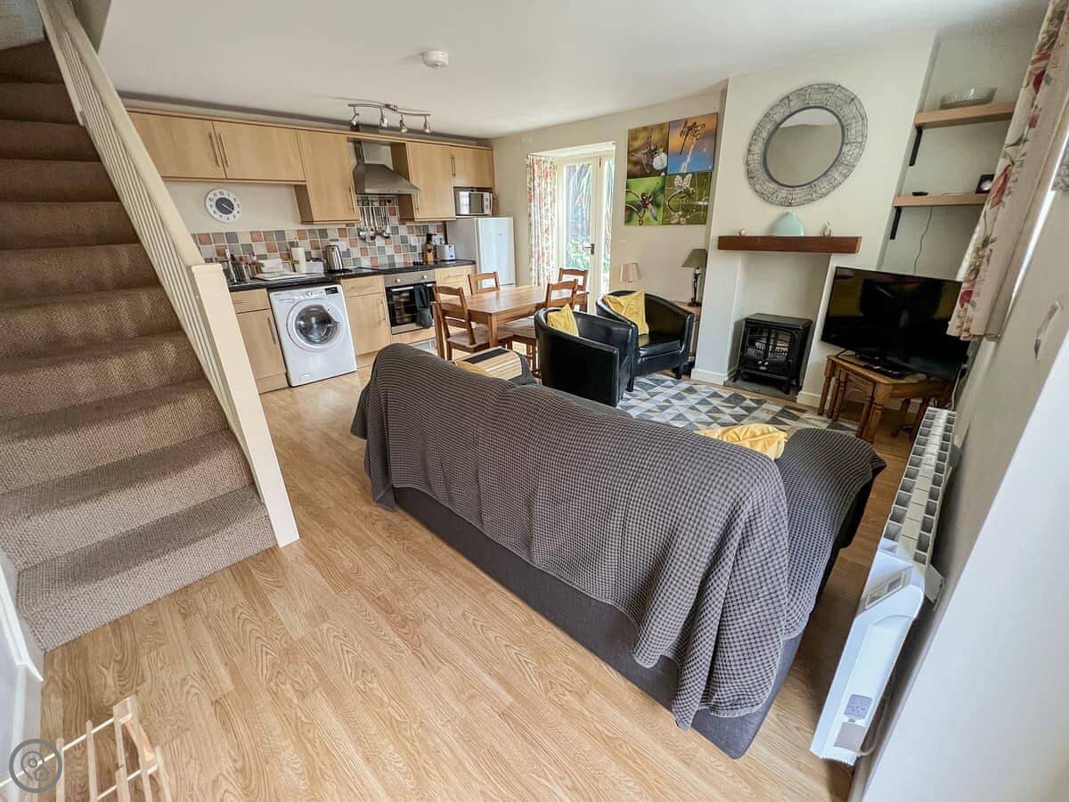 Dragonfly Two is a barn conversion on the grounds of Newton House in North Newton. It's part of a set of three holiday lets. This particular one is one of the semi-detached ones, situated on the first floor. You get to it via an external staircase.