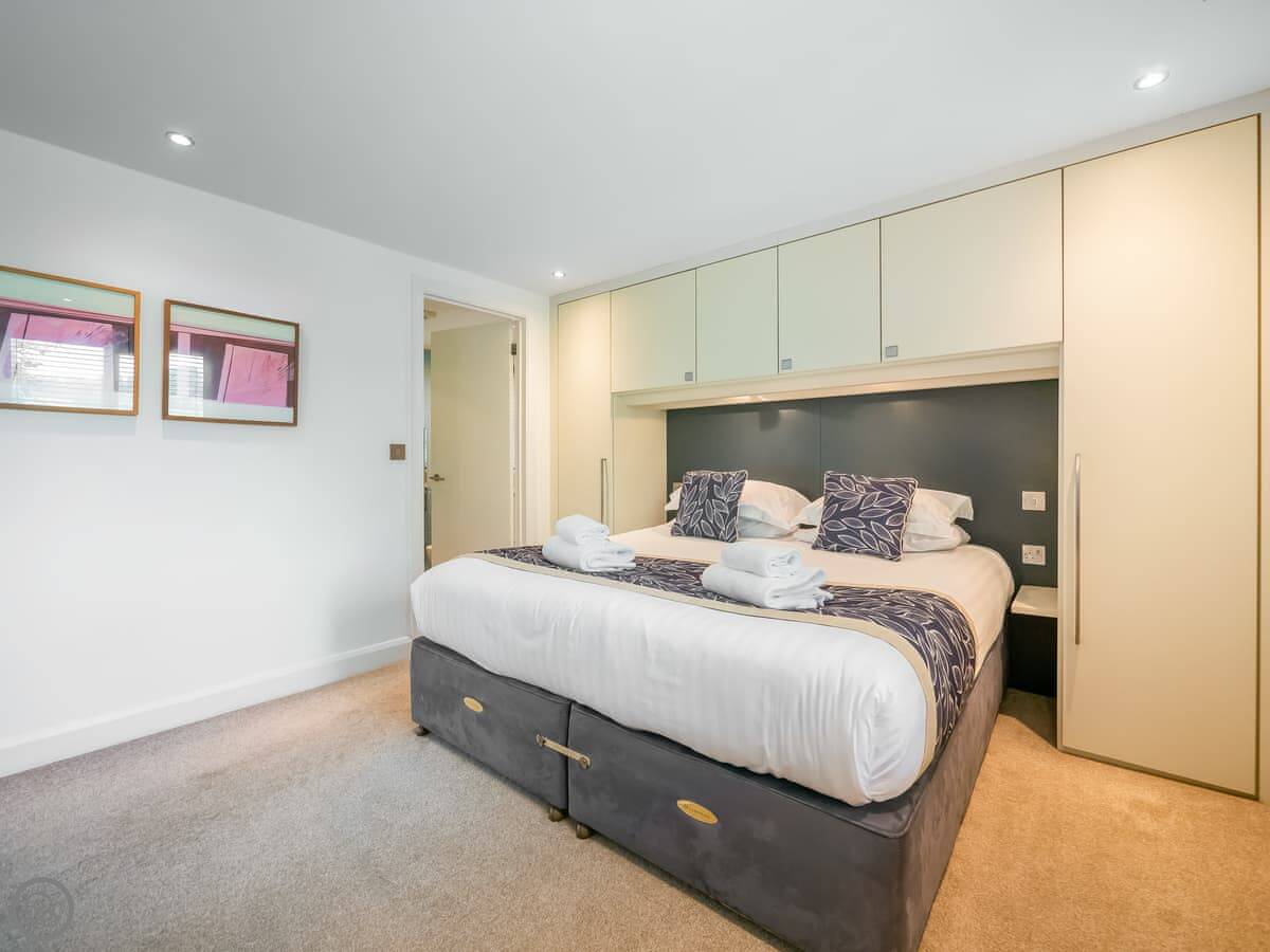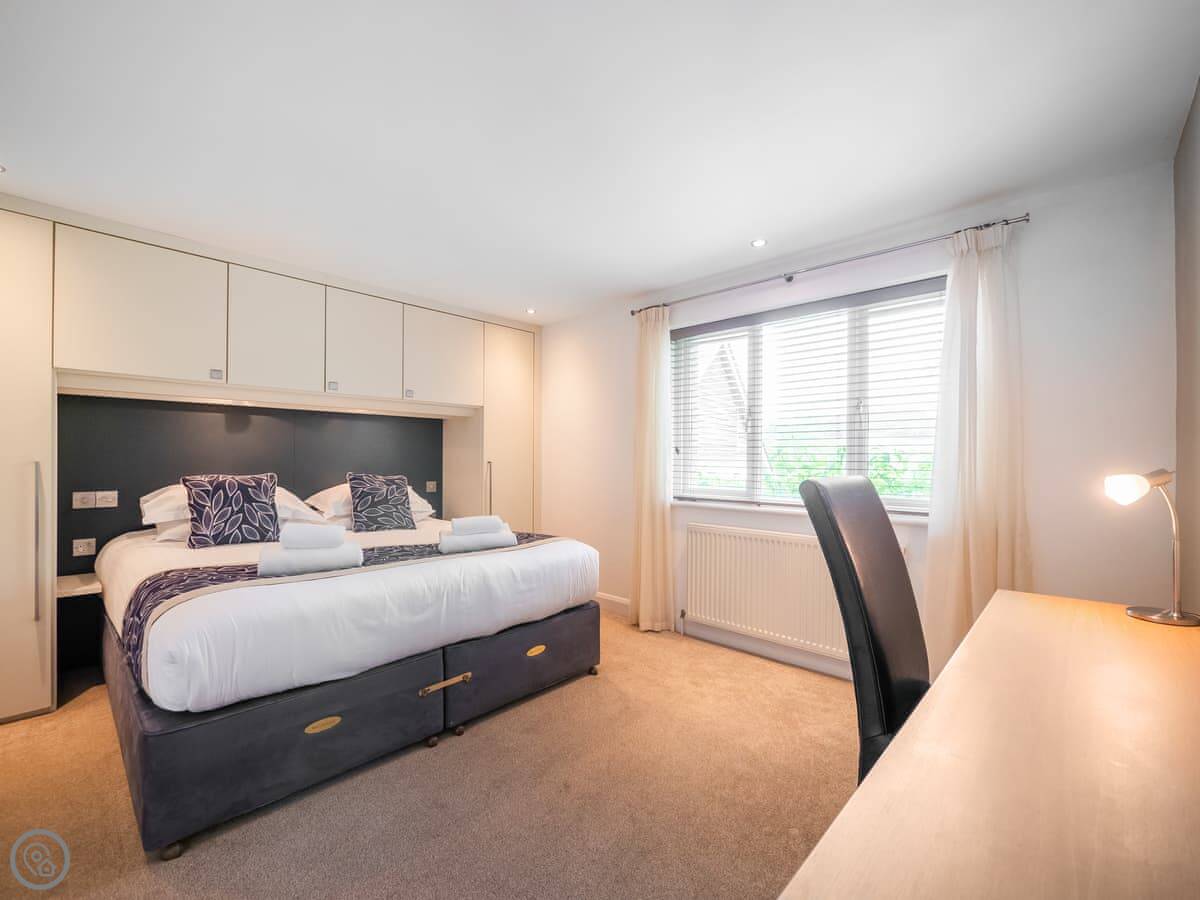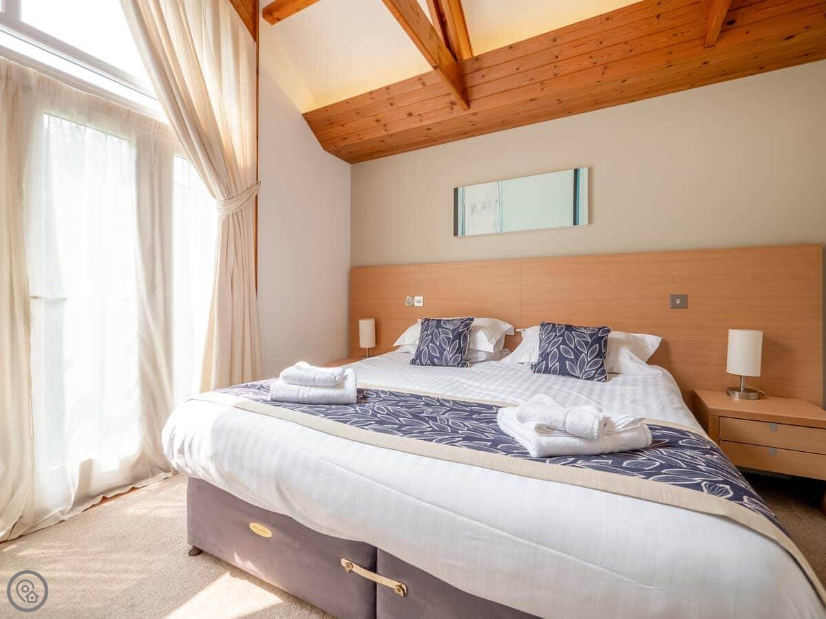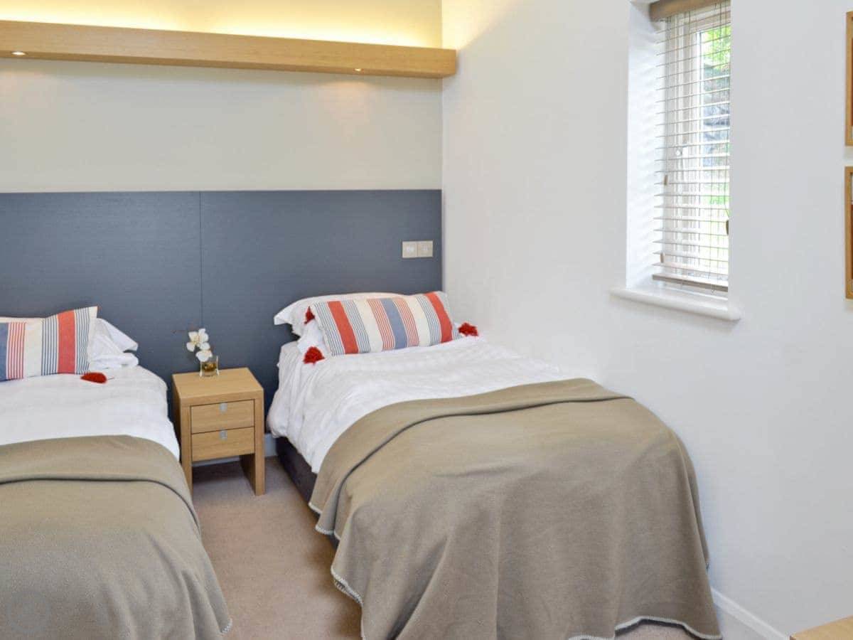 It sleeps four. Two bedrooms, two bathrooms. It's got a 5 Star rating, meaning the standard of finish is high. The design is modern but uses a lot of local stone and slate.