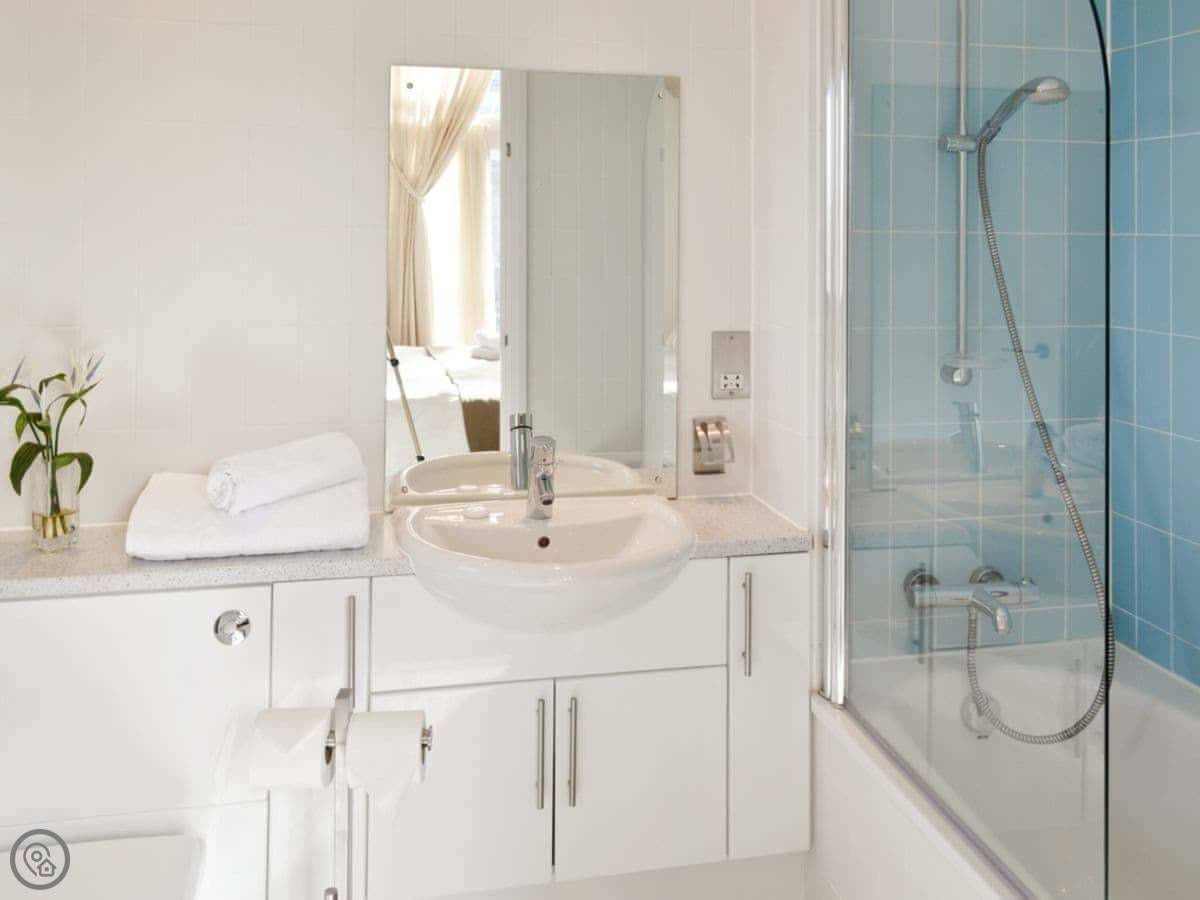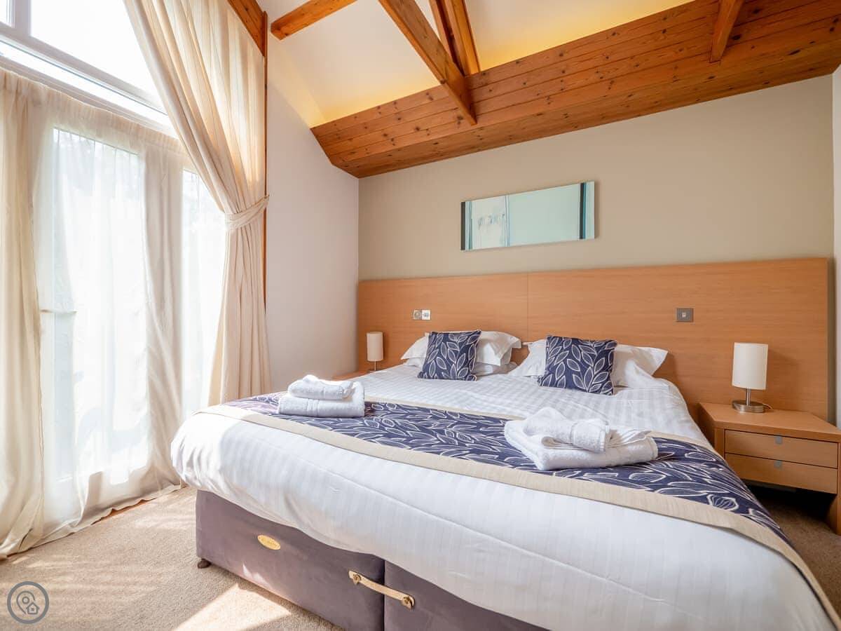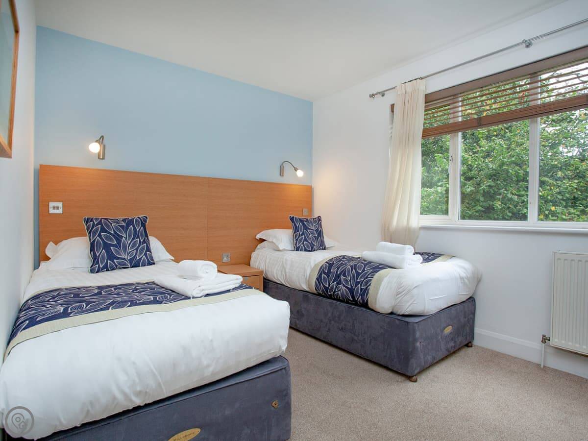 It sleeps four, with two bedrooms and two bathrooms. Each bedroom has its own bathroom, which is useful. It has a 5 Star rating, so it's well-equipped and comfortable.