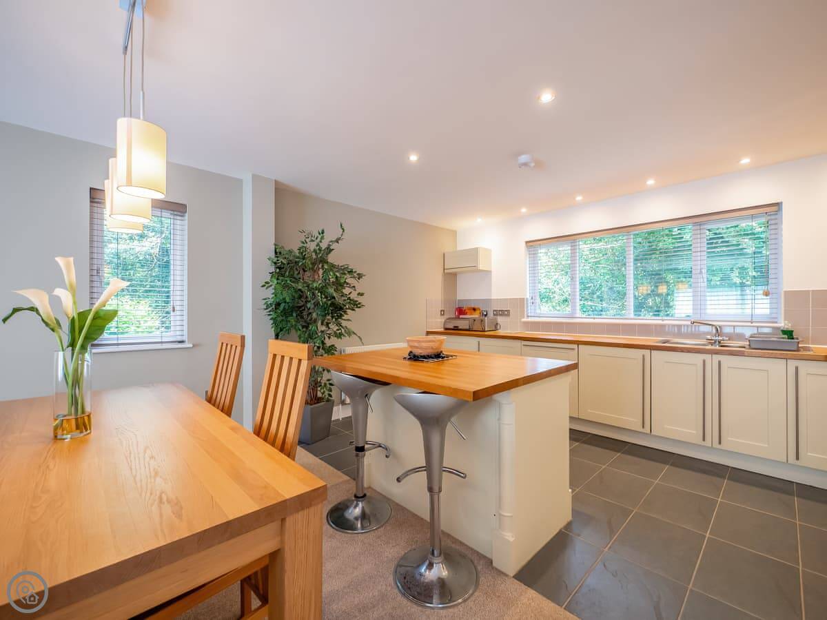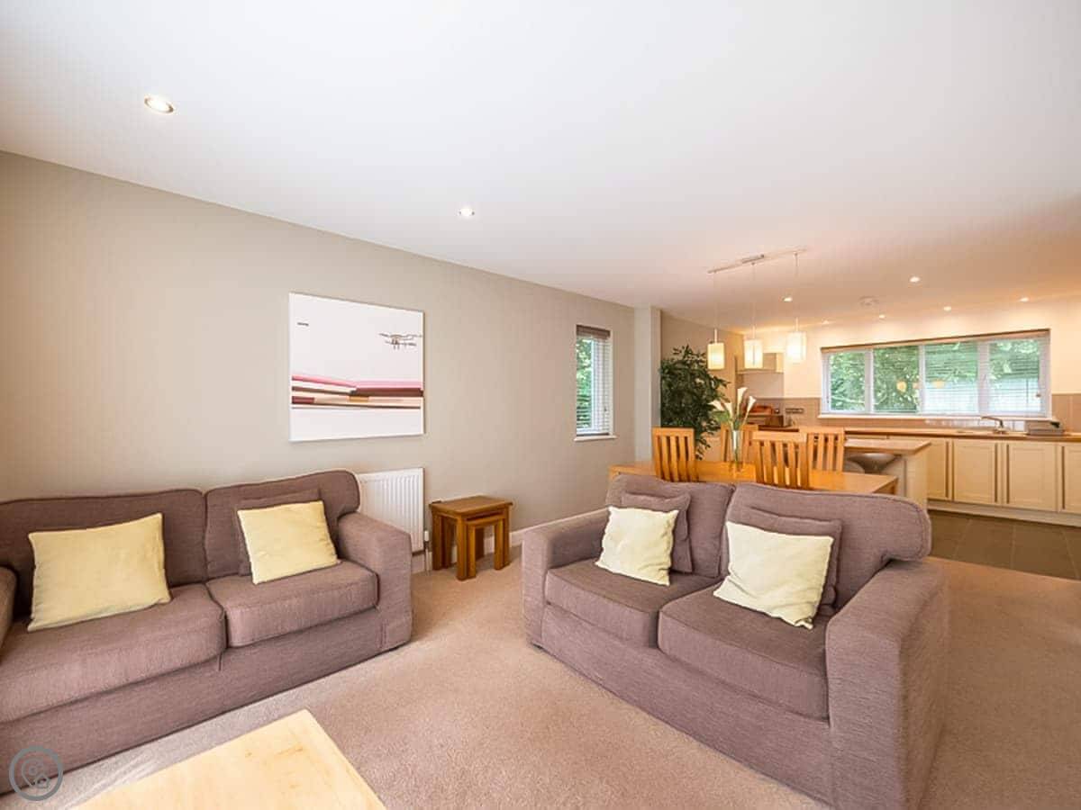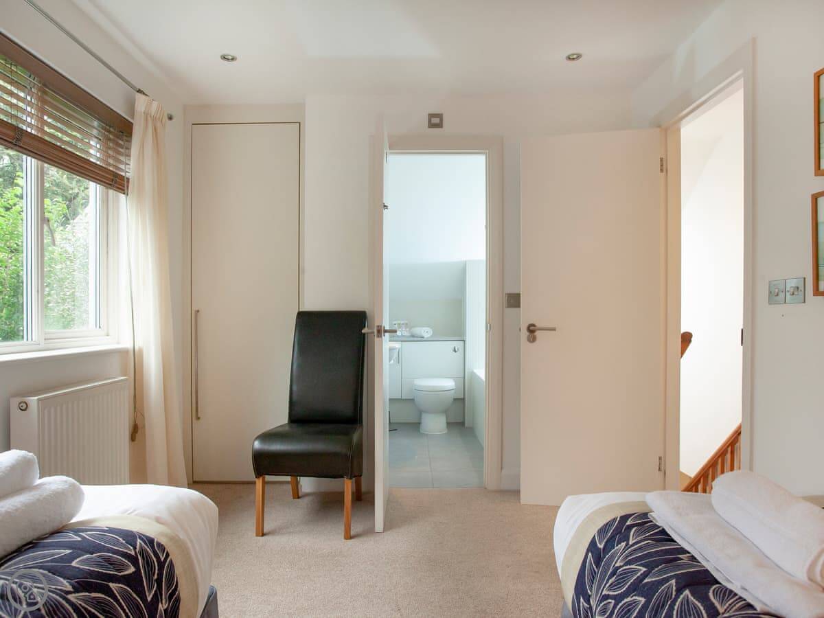 It sleeps four, with two bedrooms and two bathrooms. Each bedroom has its own bathroom, which is useful. It has a 5 Star rating, so it's well-equipped and comfortable.