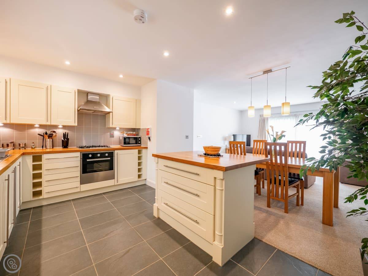 In terms of what's there: it has a dishwasher, washing machine, WiFi, and TV. Bedding and towels are included. There's a cot and highchair if you need them. Parking is right outside. No pets, sorry.