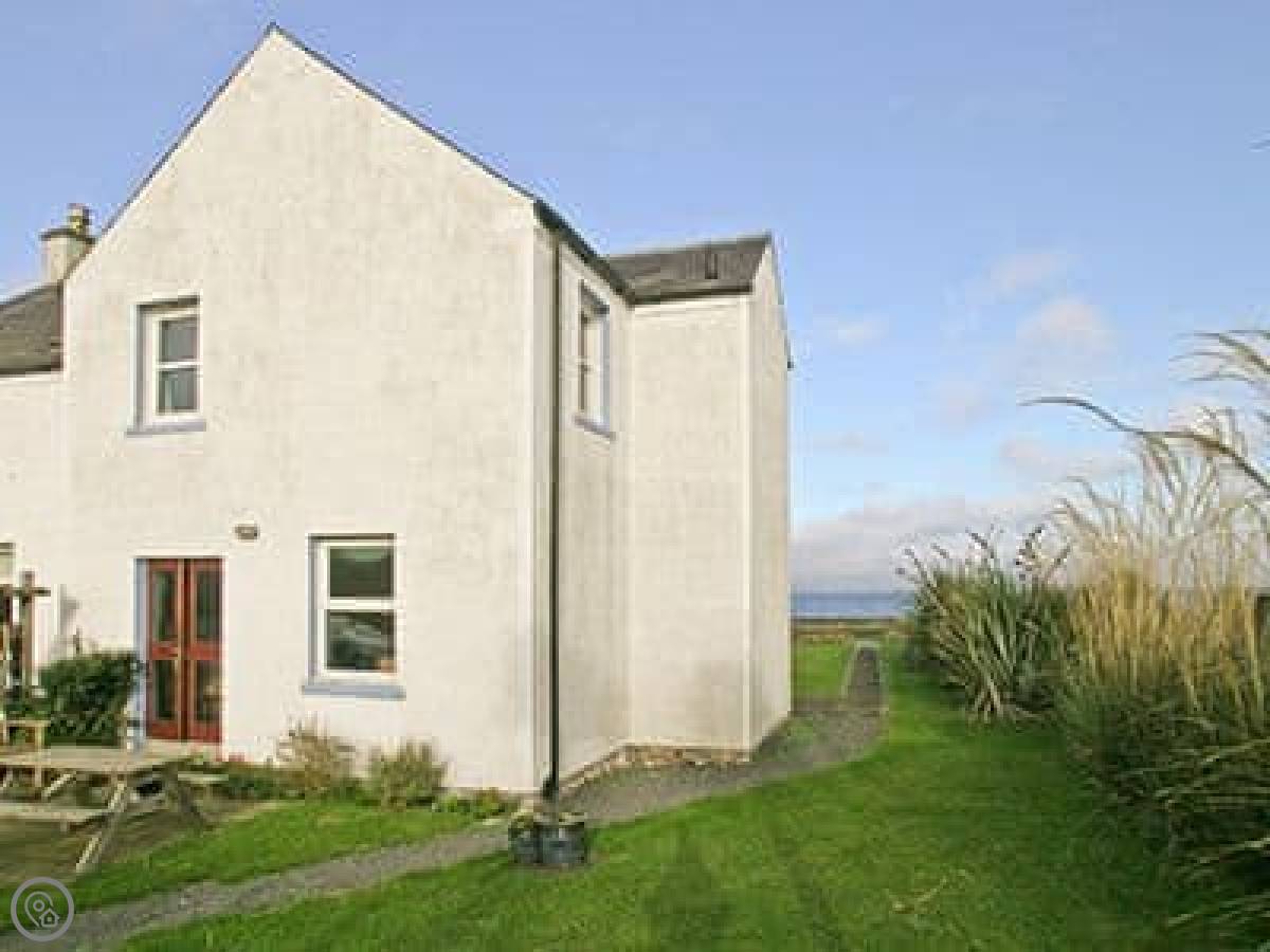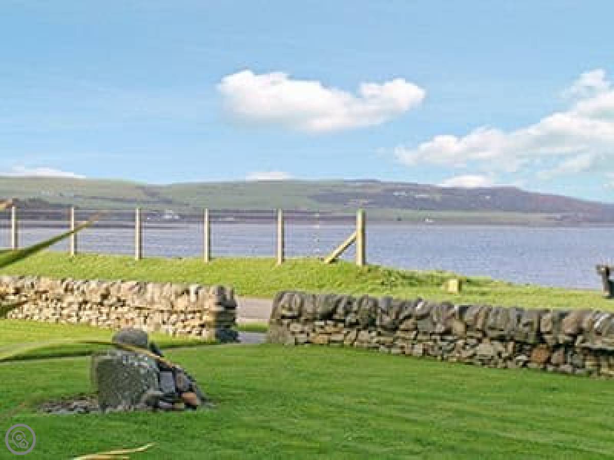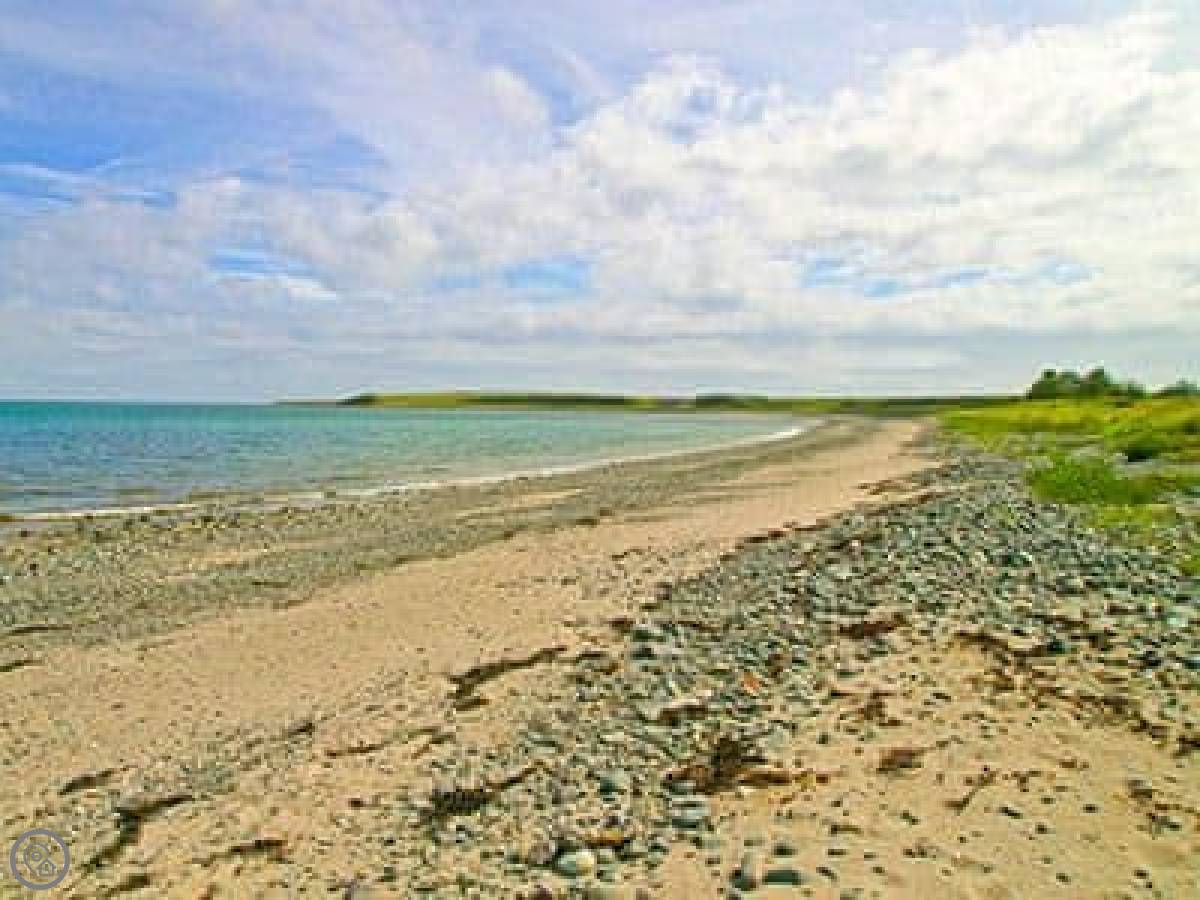 This is Jura, in Drummore. It's on the Rhins of Galloway, which is about as far south as you can go in Scotland. The cottage is right on the road above Luce Bay. You look out the front windows and that's your view, just the bay. It can be very calm, or when the wind's up, you can just sit and watch the waves. It's good in winter for that.