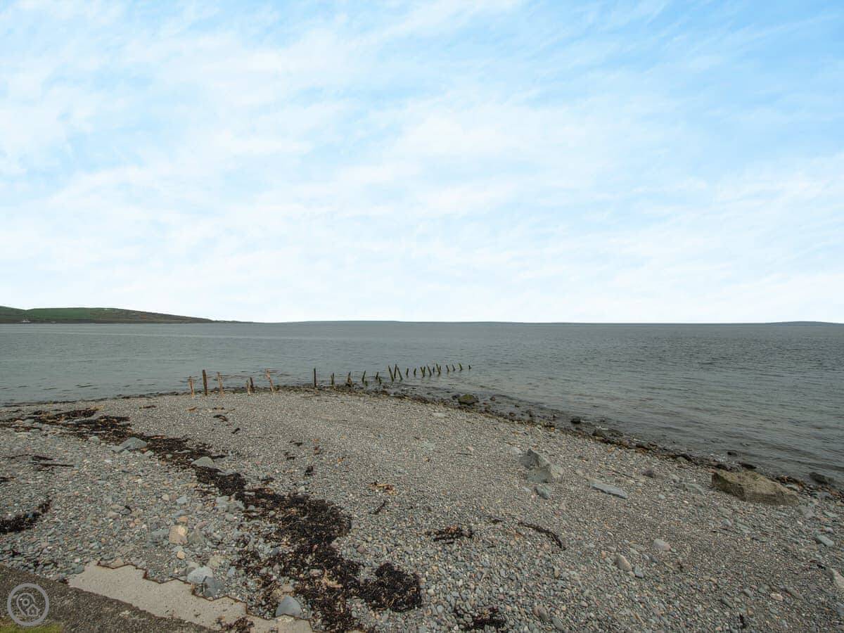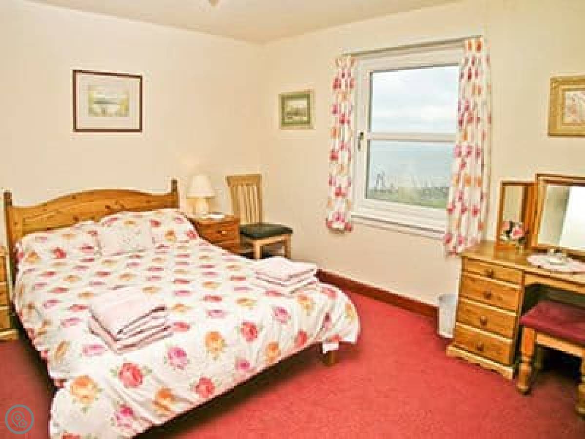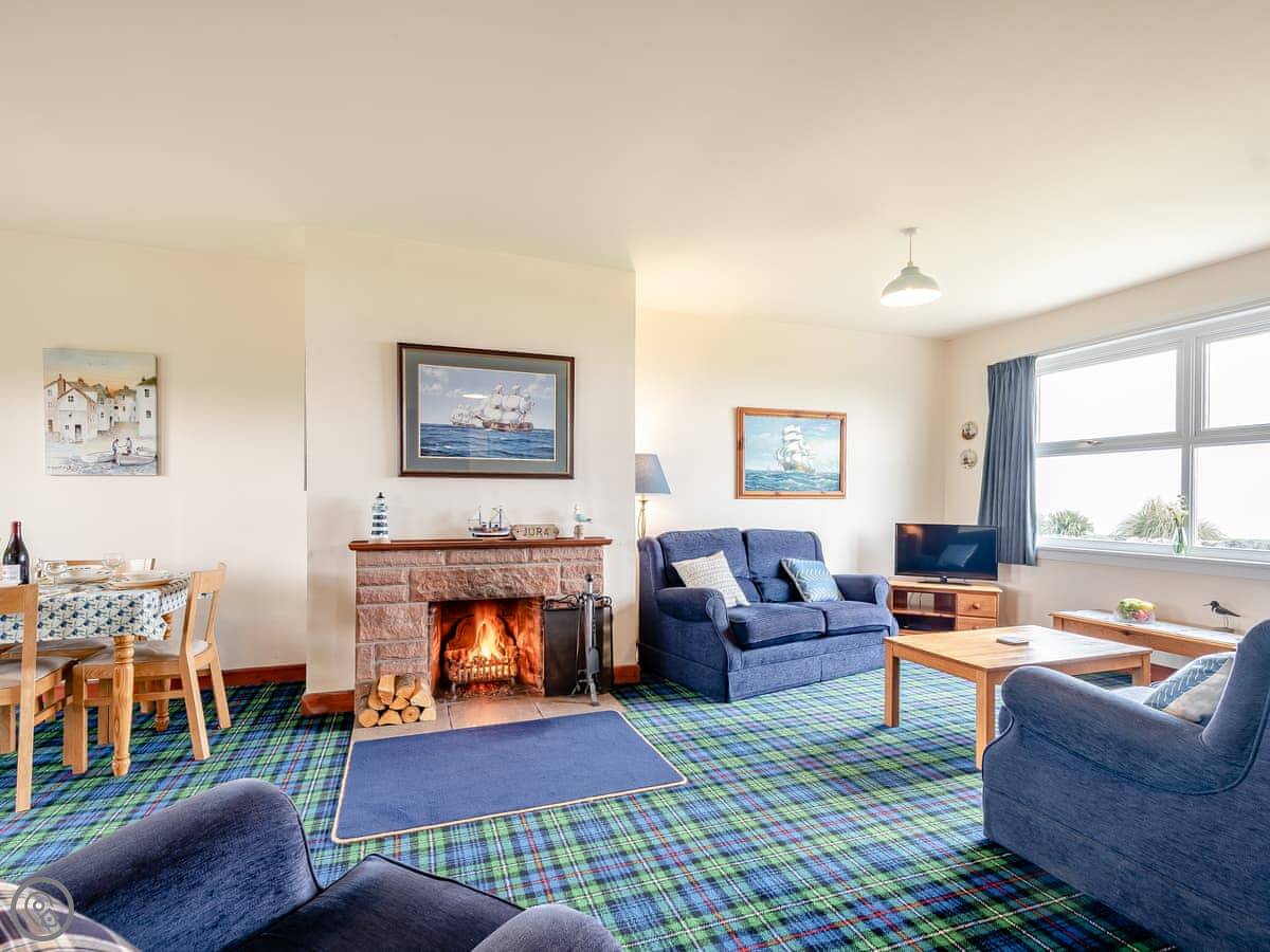 This is Jura, in Drummore. It's on the Rhins of Galloway, which is about as far south as you can go in Scotland. The cottage is right on the road above Luce Bay. You look out the front windows and that's your view, just the bay. It can be very calm, or when the wind's up, you can just sit and watch the waves. It's good in winter for that.