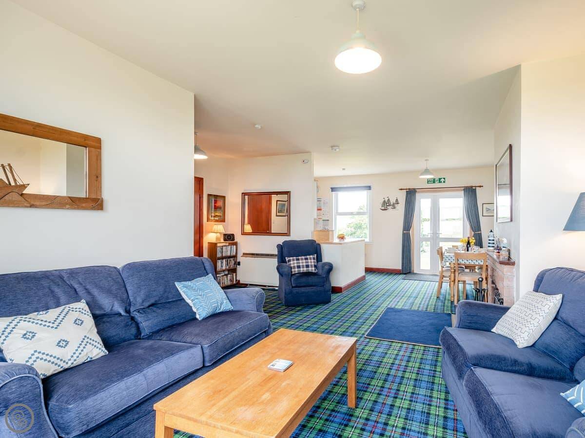 Outside, there's a patio and garden area for you. The beach is just across the road. It's sand and shingle, good for a walk or for the dogs.