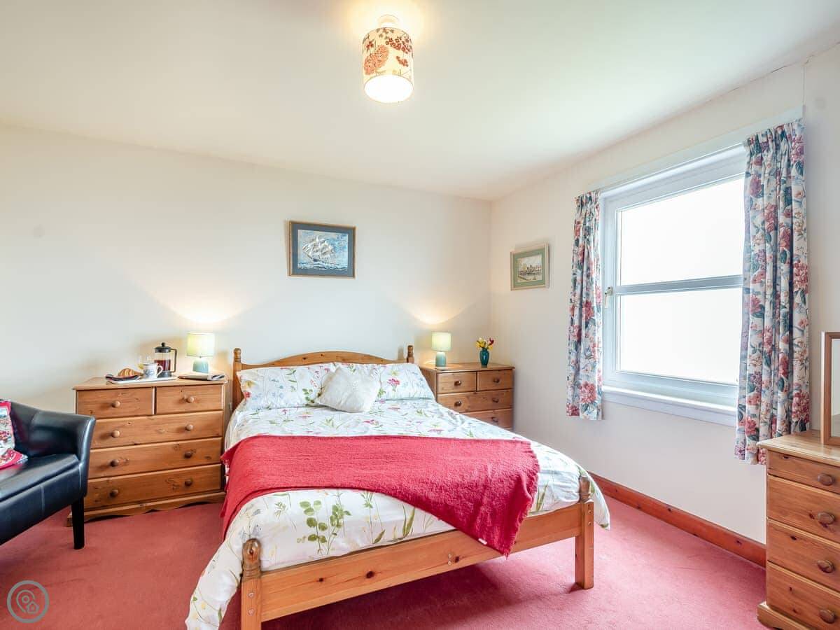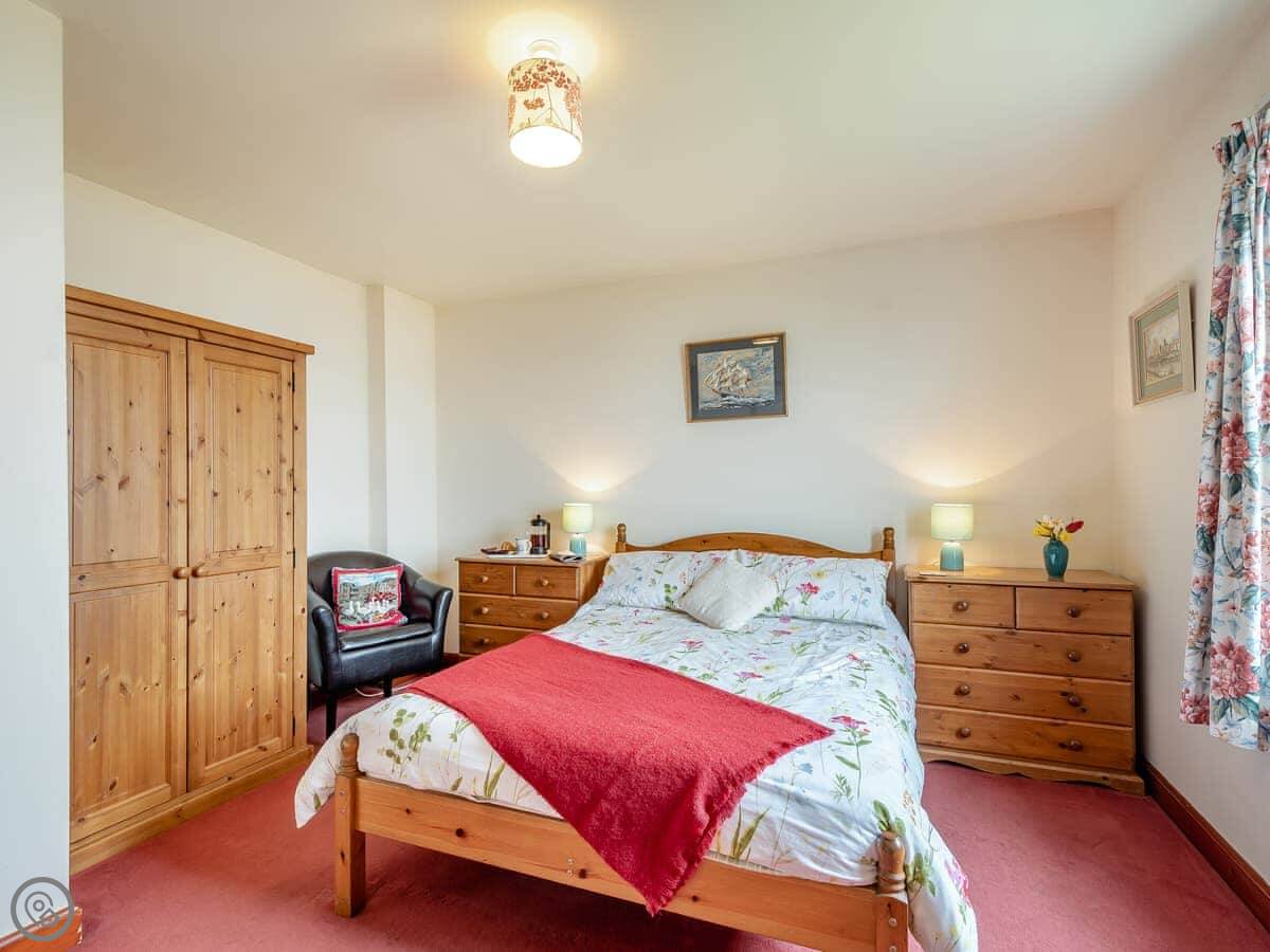 It sleeps six, with three bedrooms and one bathroom. It's got a 3 Star rating, so it's comfortable and clean. The facilities are what you'd expect: there's a woodburning stove, a dishwasher, WiFi, and parking. Bedding and towels are included. You can bring up to two dogs.