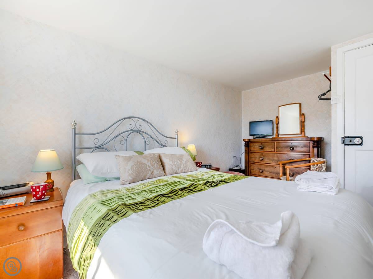 In terms of what's here, the bedding is included. There's a shower, a TV, and parking can be tricky in the village but there is a public car park a short walk away. No pets, sorry.