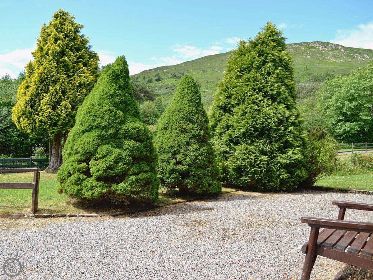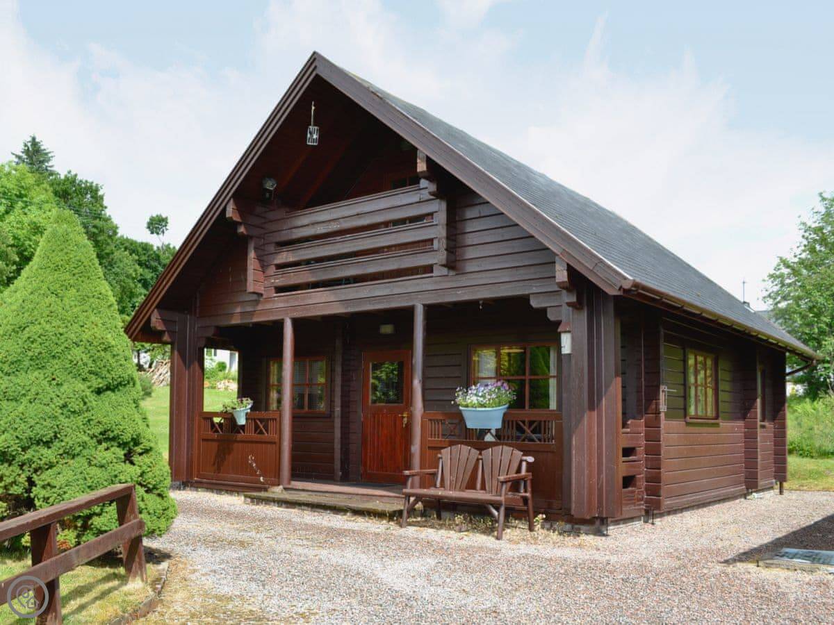This is Chalet 1. It's in Tomacharich, just outside Fort William. It's a detached lodge, so you're not attached to anyone else. There's a patio and a garden area to sit out.