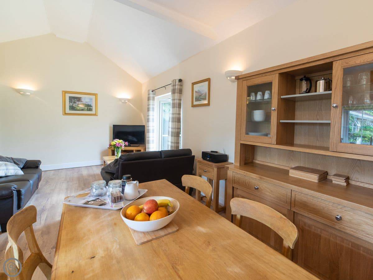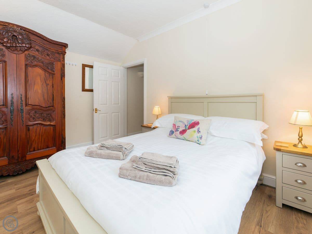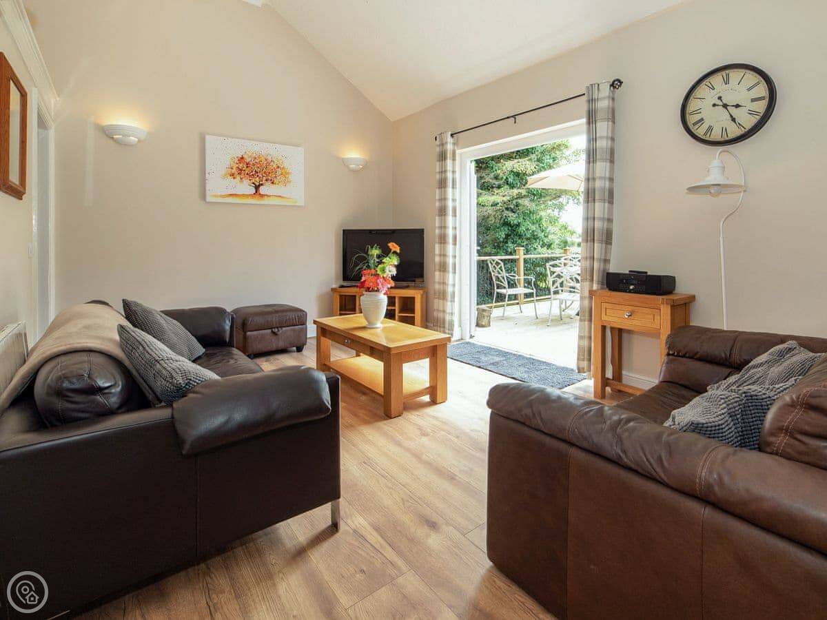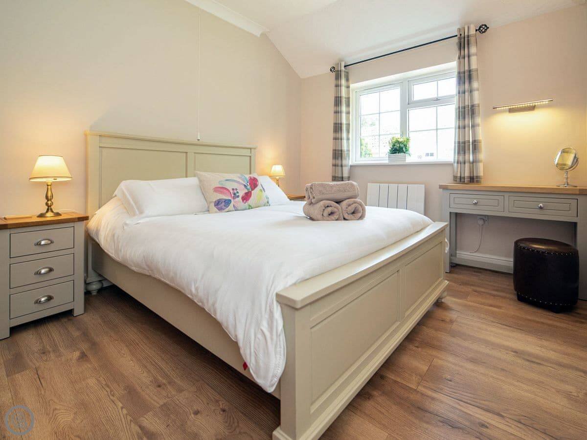 It sleeps four. Two bedrooms. One bathroom with a walk-in shower. There's no bath. It's all on the ground floor so it's good if steps are difficult. There are grab rails in the shower and a seat.