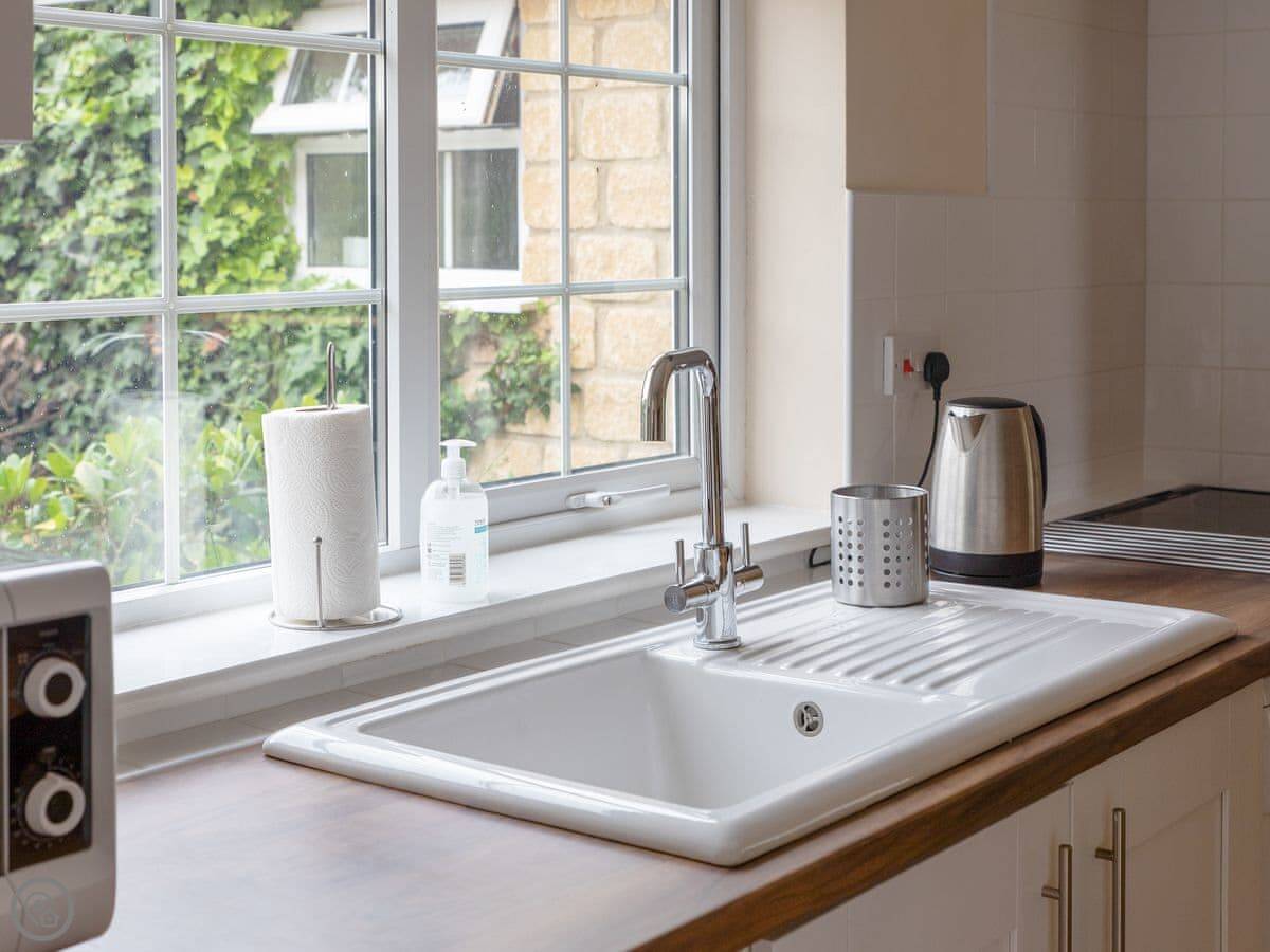 1 Luckington Stables is a bungalow. It used to be stables for the main house next door. We did it up a few years ago, so everything inside is clean and works.
