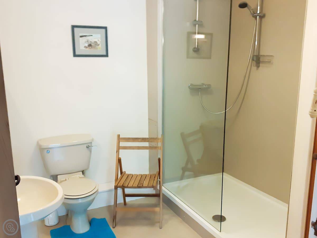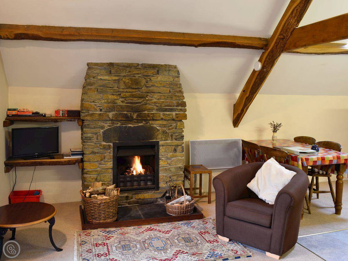 In terms of what's there: it's open plan downstairs. There's a woodburning stove, WiFi, a TV, and parking. There's an electric vehicle charger. We provide bedding and towels. There's a cot if you need one. You have your own patio and garden area. We don't allow pets.
