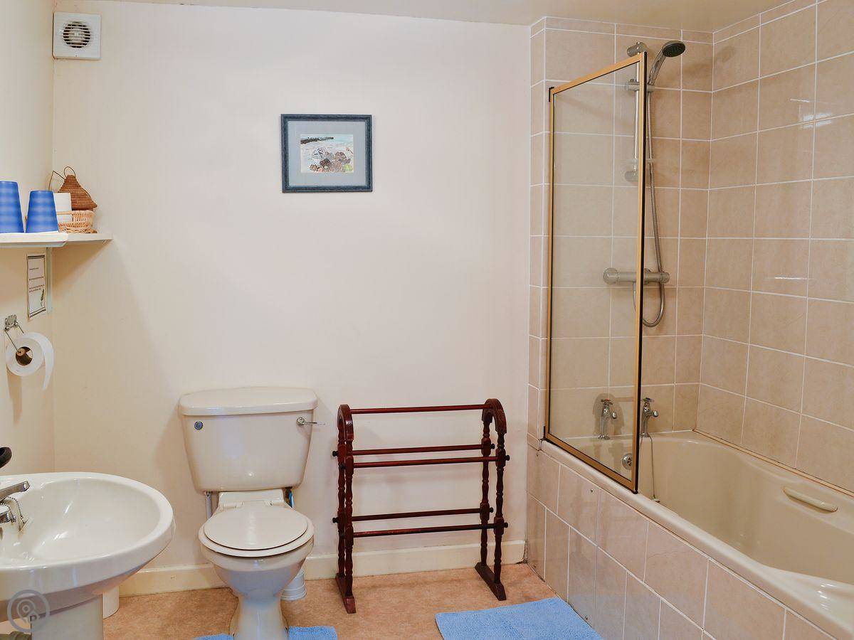 It's for four people, but there's only one actual bedroom. That bedroom has a double bed. Then there's a sofa bed in the main living space. There's one bathroom with a shower. It's got a 4 Star rating, so it's comfortable and well-equipped.