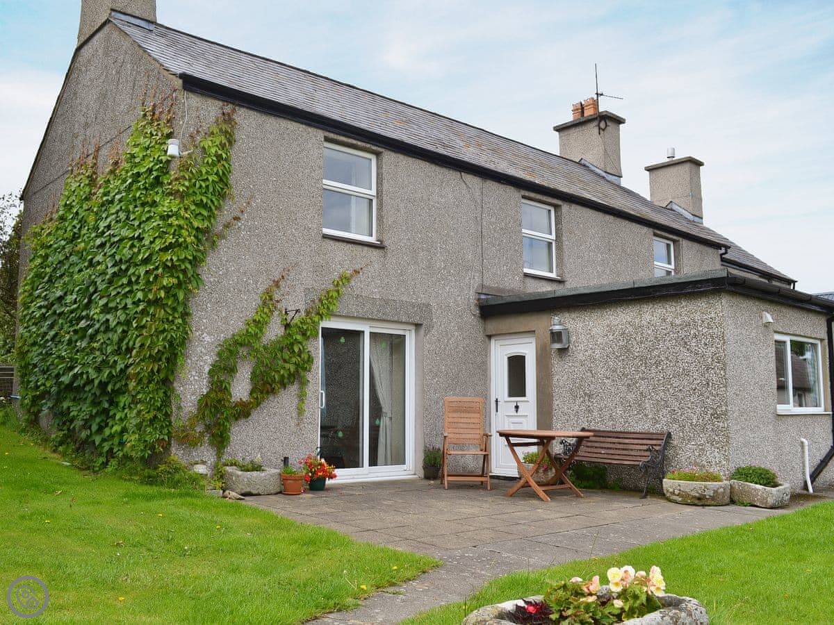 This is Gallt Y Balch. It's on our farm in Hermon, near Newborough on Anglesey. We raise cattle and sheep here, so you'll see the animals in the fields. The cottage itself is semi-detached, part of a pair, but you have your own garden.