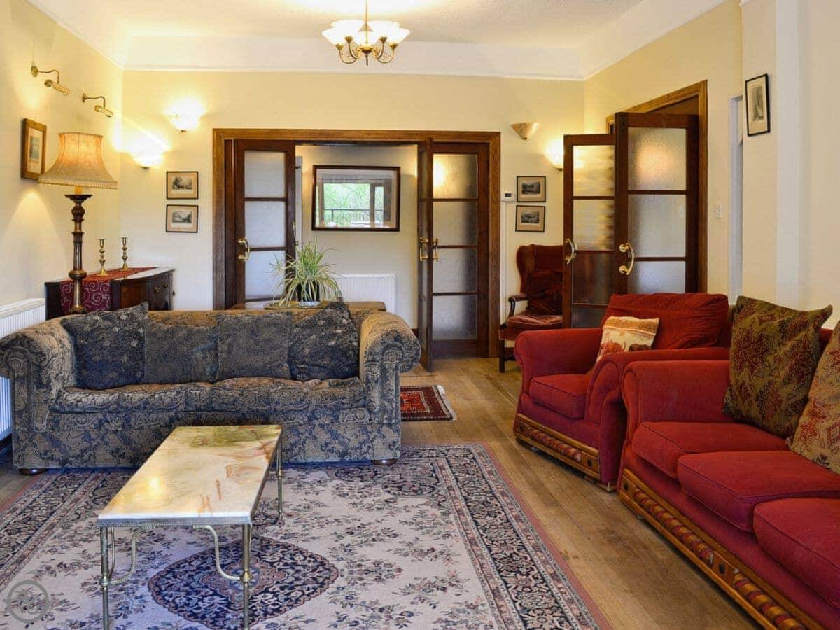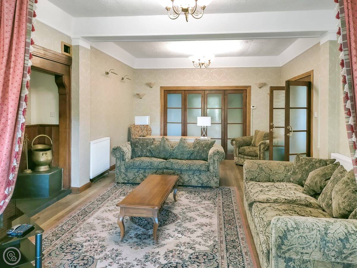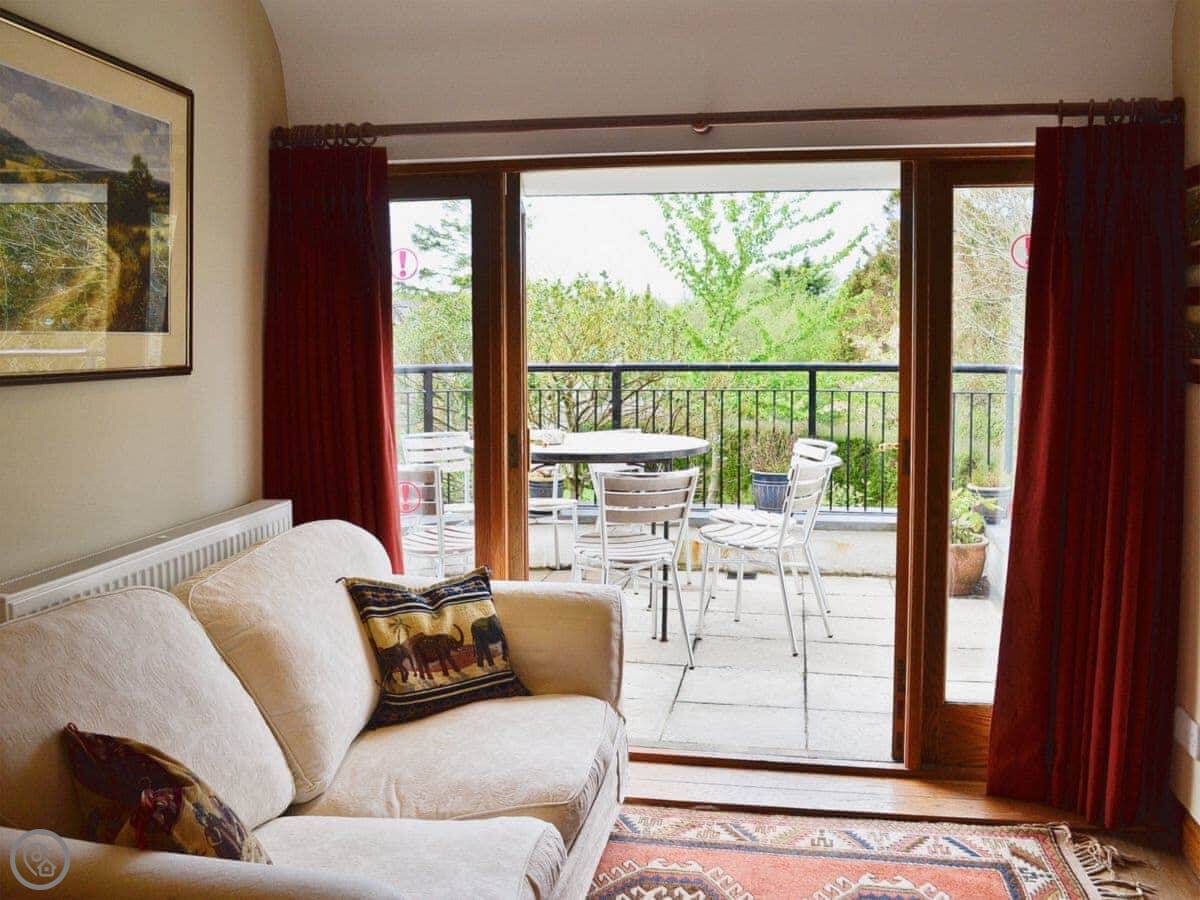 It sleeps ten, in four bedrooms. There are three bathrooms, which with that many people is handy. It's got a 4 Star rating. The living room has French doors out to a little balcony that looks over the garden. The garden is enclosed, so it's safe for kids and dogs. You can use the barbecue.