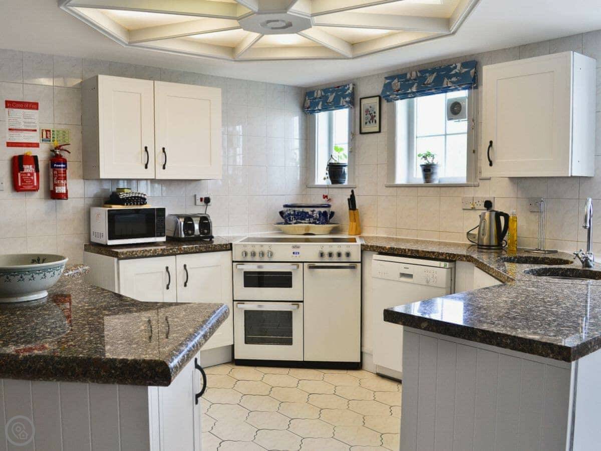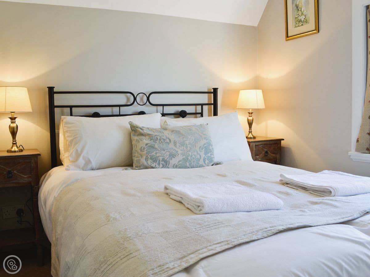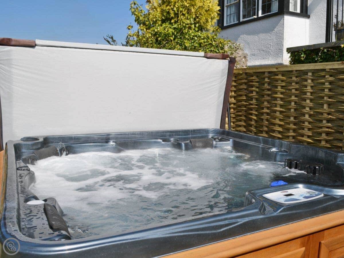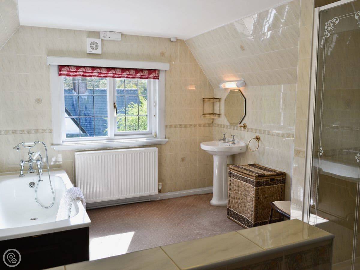 It sleeps ten, in four bedrooms. There are three bathrooms, which with that many people is handy. It's got a 4 Star rating. The living room has French doors out to a little balcony that looks over the garden. The garden is enclosed, so it's safe for kids and dogs. You can use the barbecue.