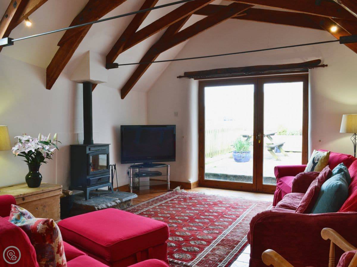 The living space is open plan. There's a wood burner for cooler evenings. You've got an enclosed garden and patio with a barbecue. The garden is shared with the other cottages.