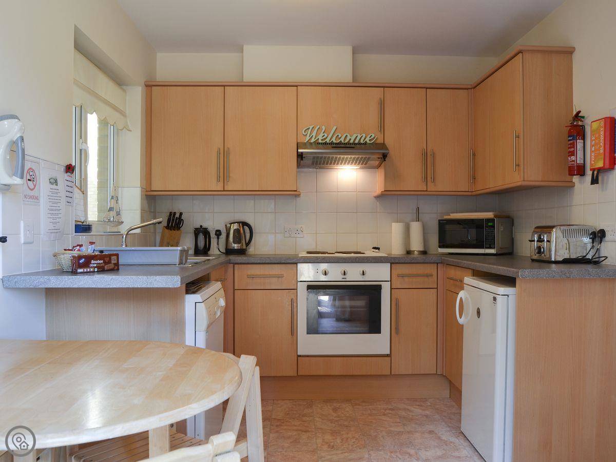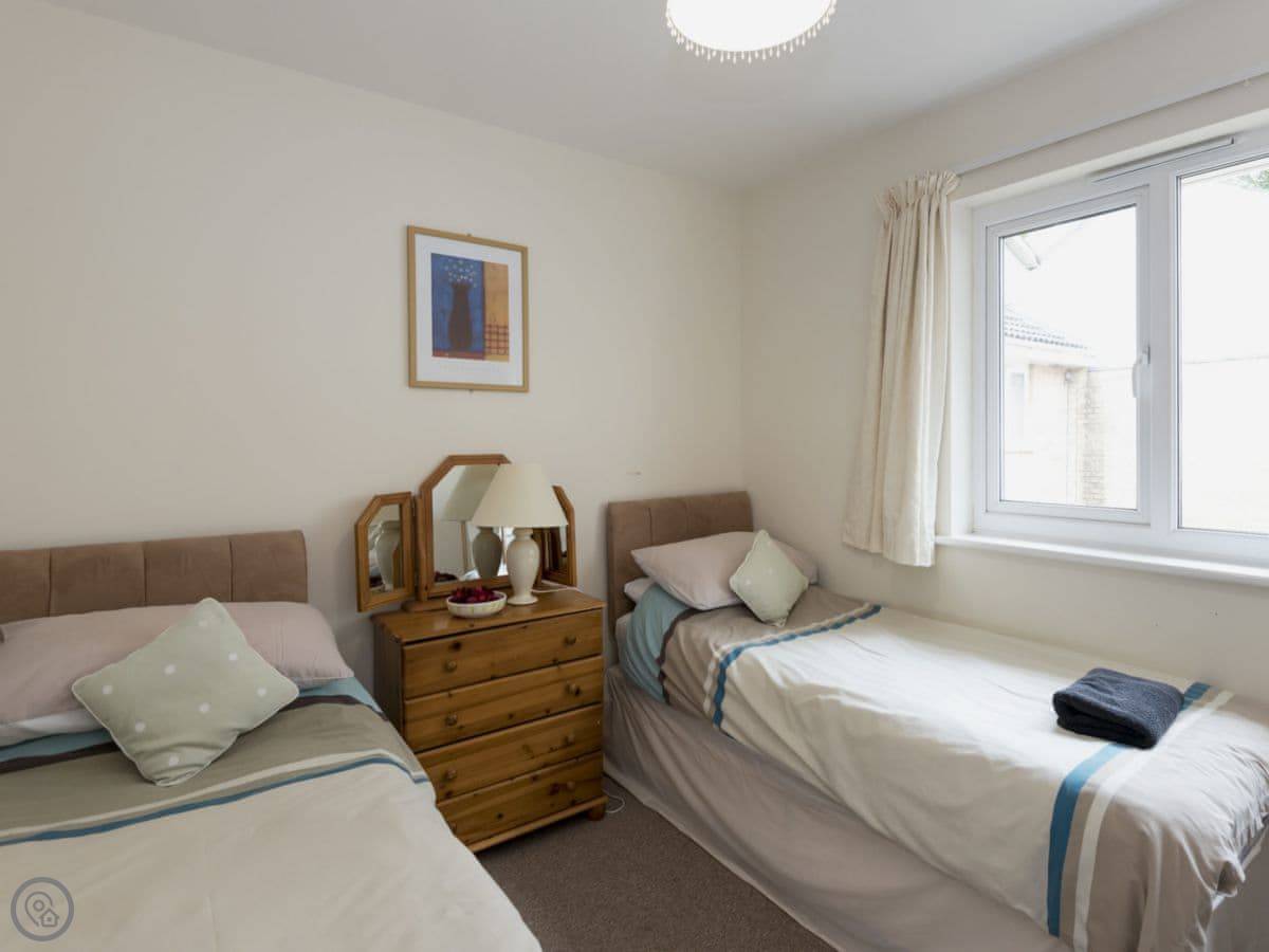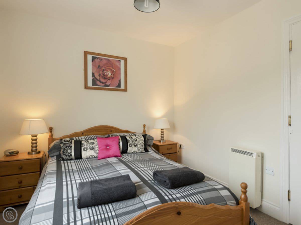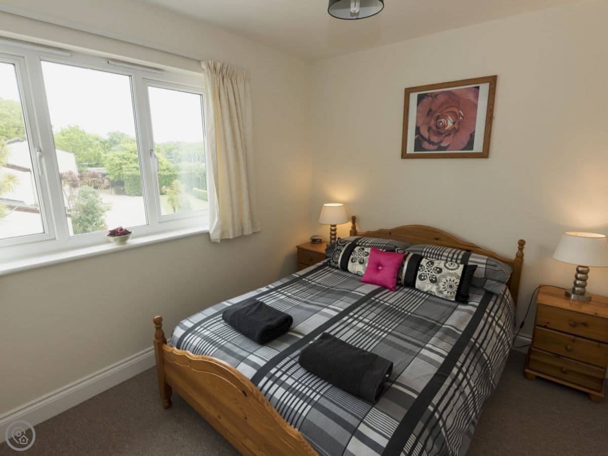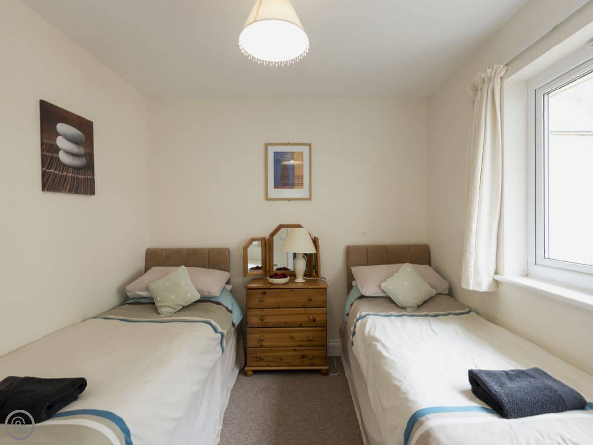 It sleeps four. Two bedrooms, and each has its own bathroom, so three bathrooms in total. It's a 3 Star place, so it's clean and tidy and works well. You can bring one dog.