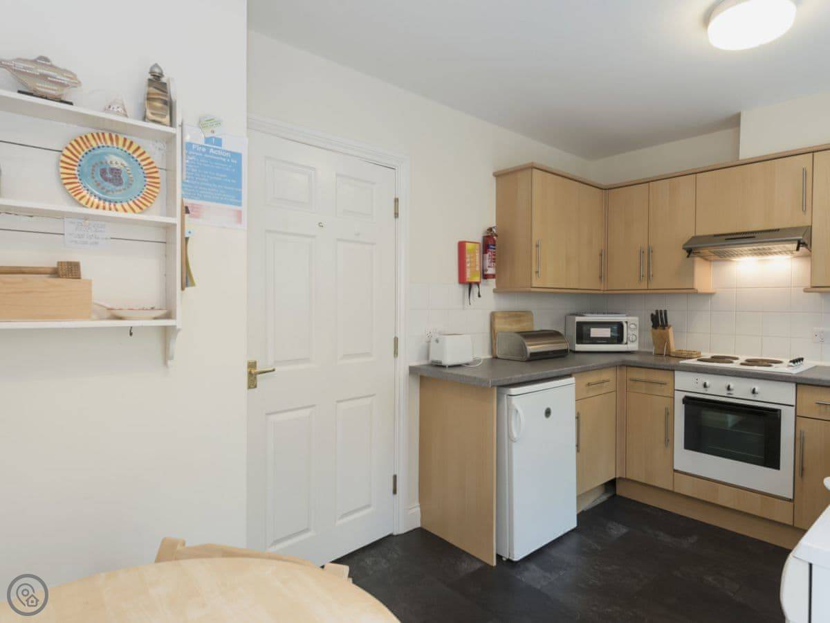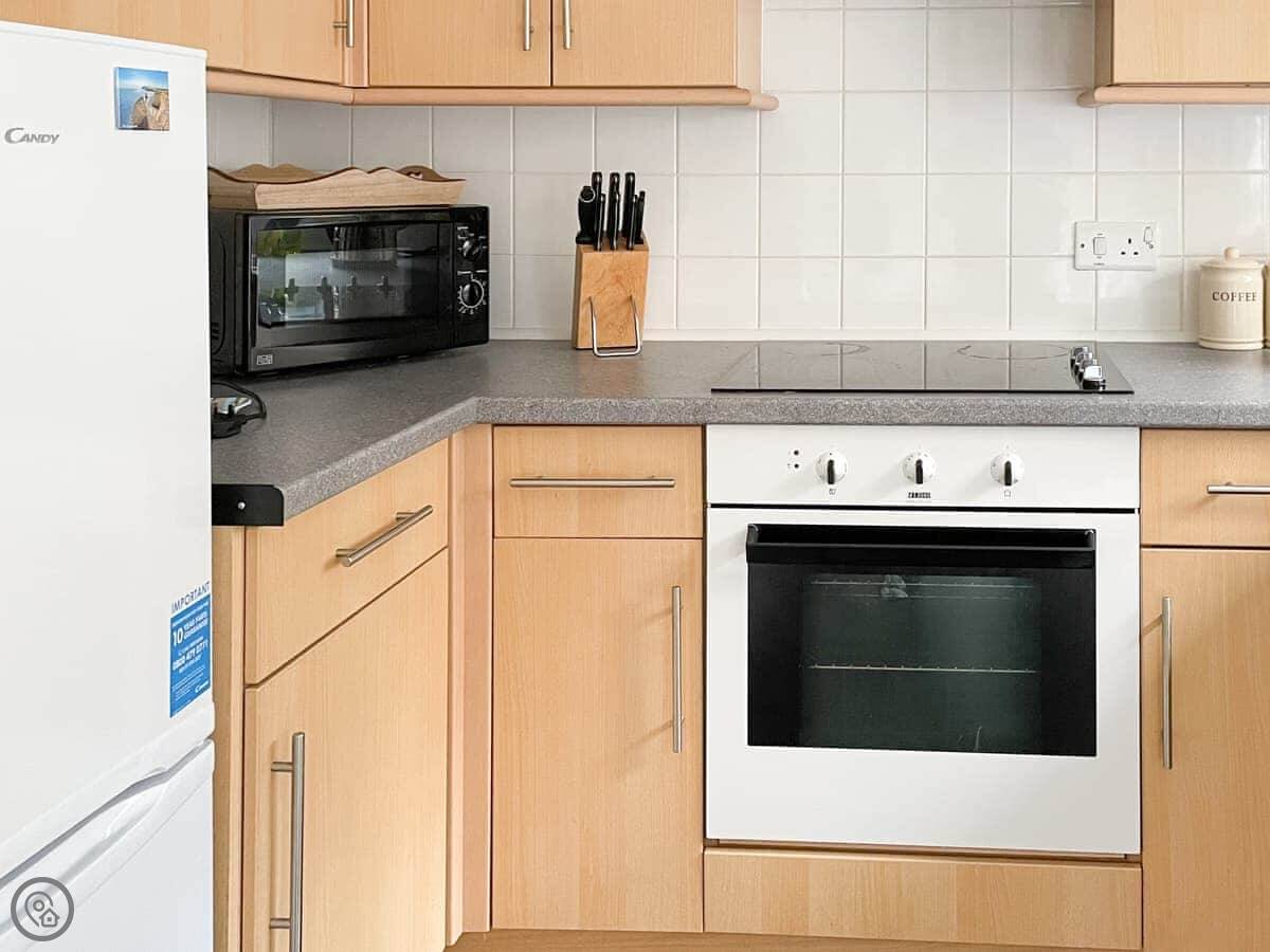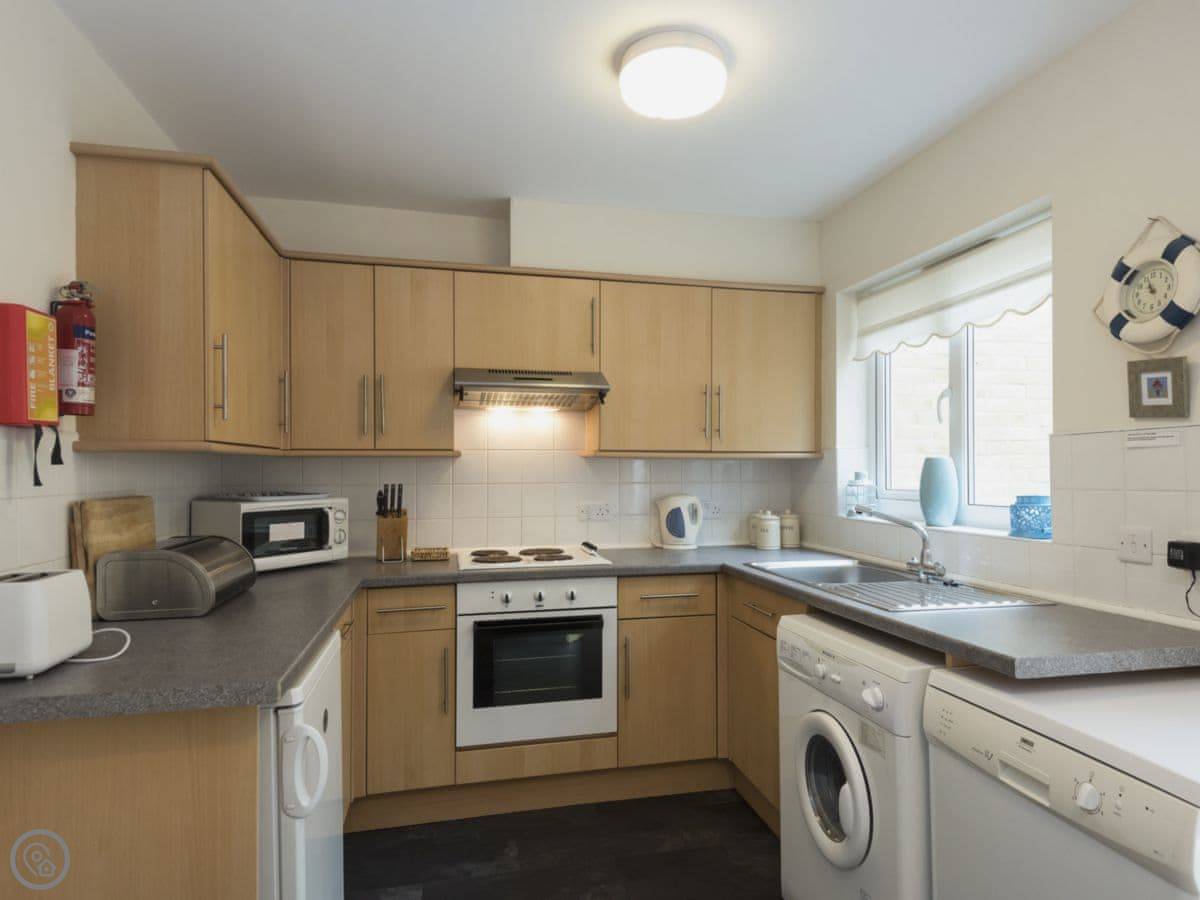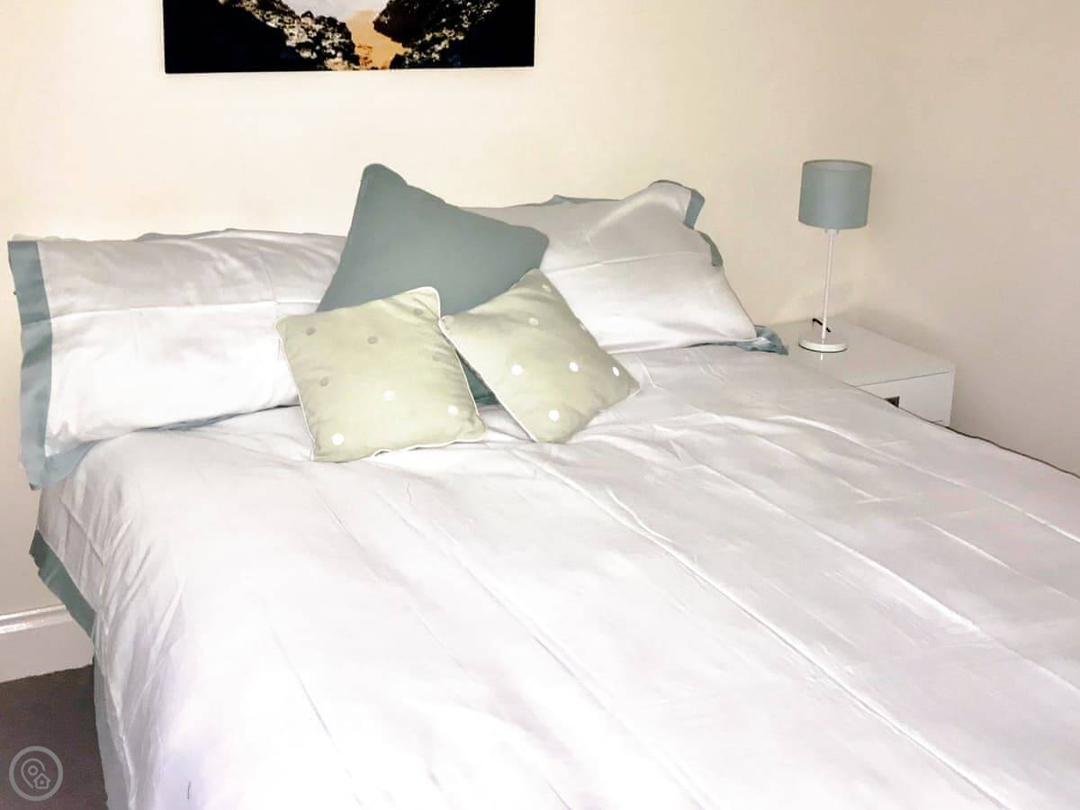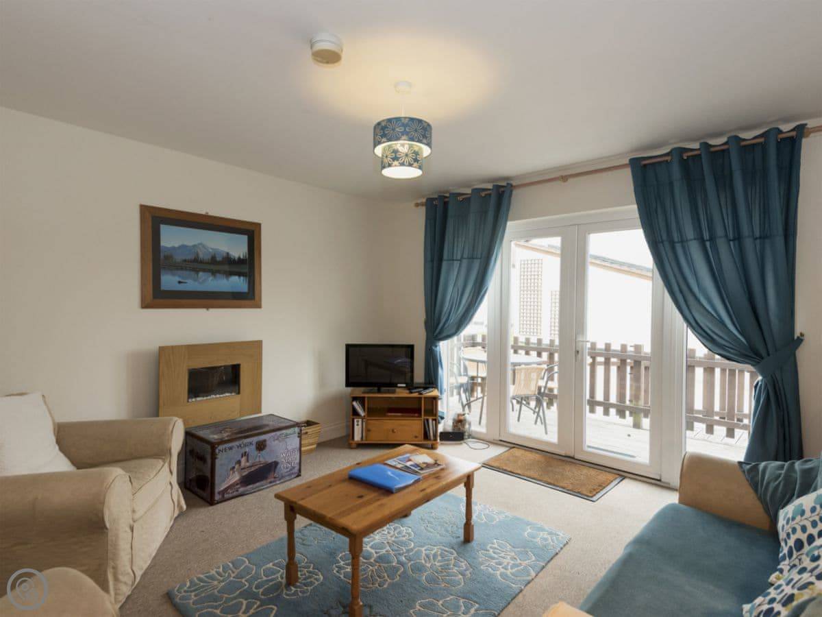 It sleeps four. Two bedrooms, and each has its own bathroom, so three bathrooms in total. It's a 3 Star place, so it's clean and tidy and works well. You can bring one dog.