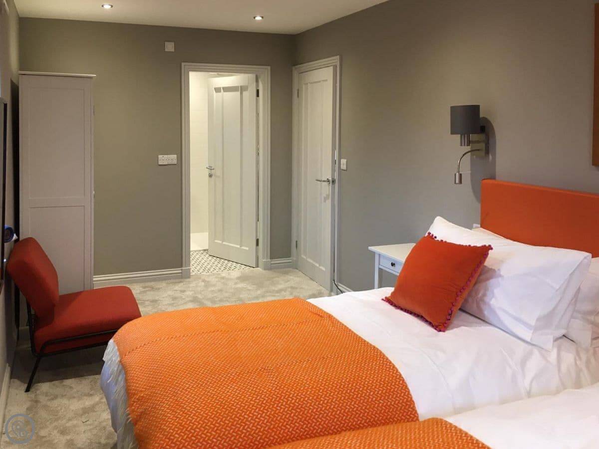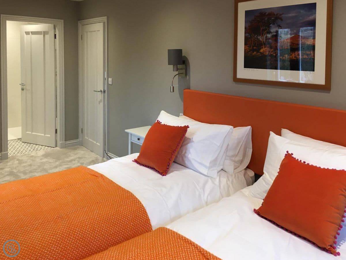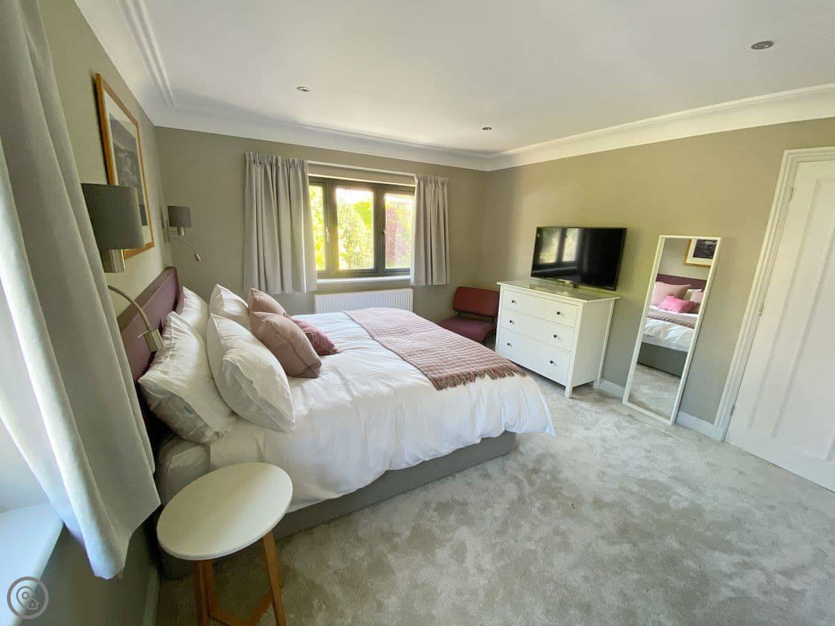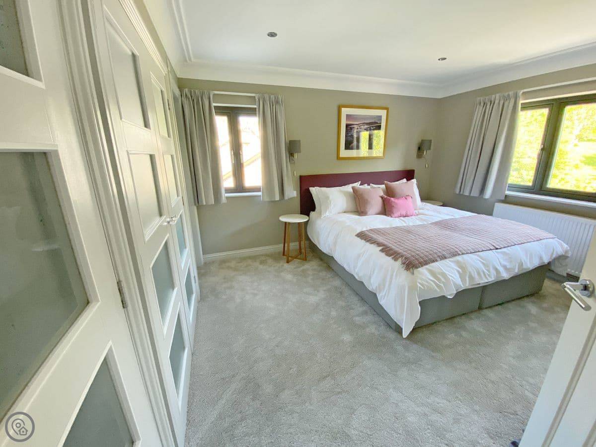 It sleeps eight. Four bedrooms, all with their own bathroom. One bedroom is on the ground floor, which is useful. The place was done up a few years ago, so it's in good order. It's a 5 Star property, which means it's well-equipped and comfortable.