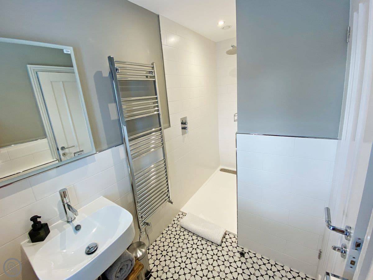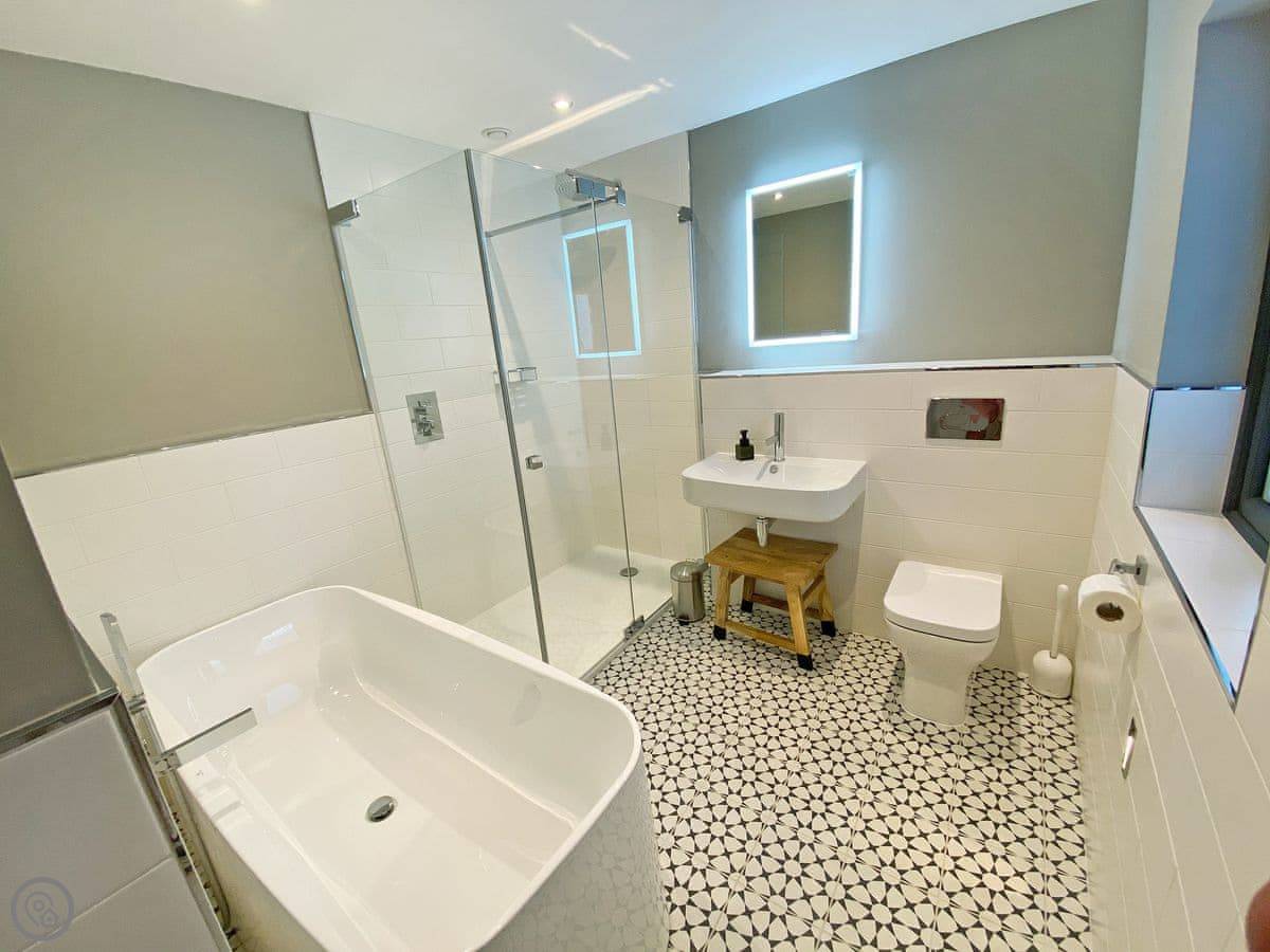 The house is at 500 feet, so you get a view. You can pick up the Dales Way footpath right from the door. There's an outdoor dog shower to clean muddy paws.