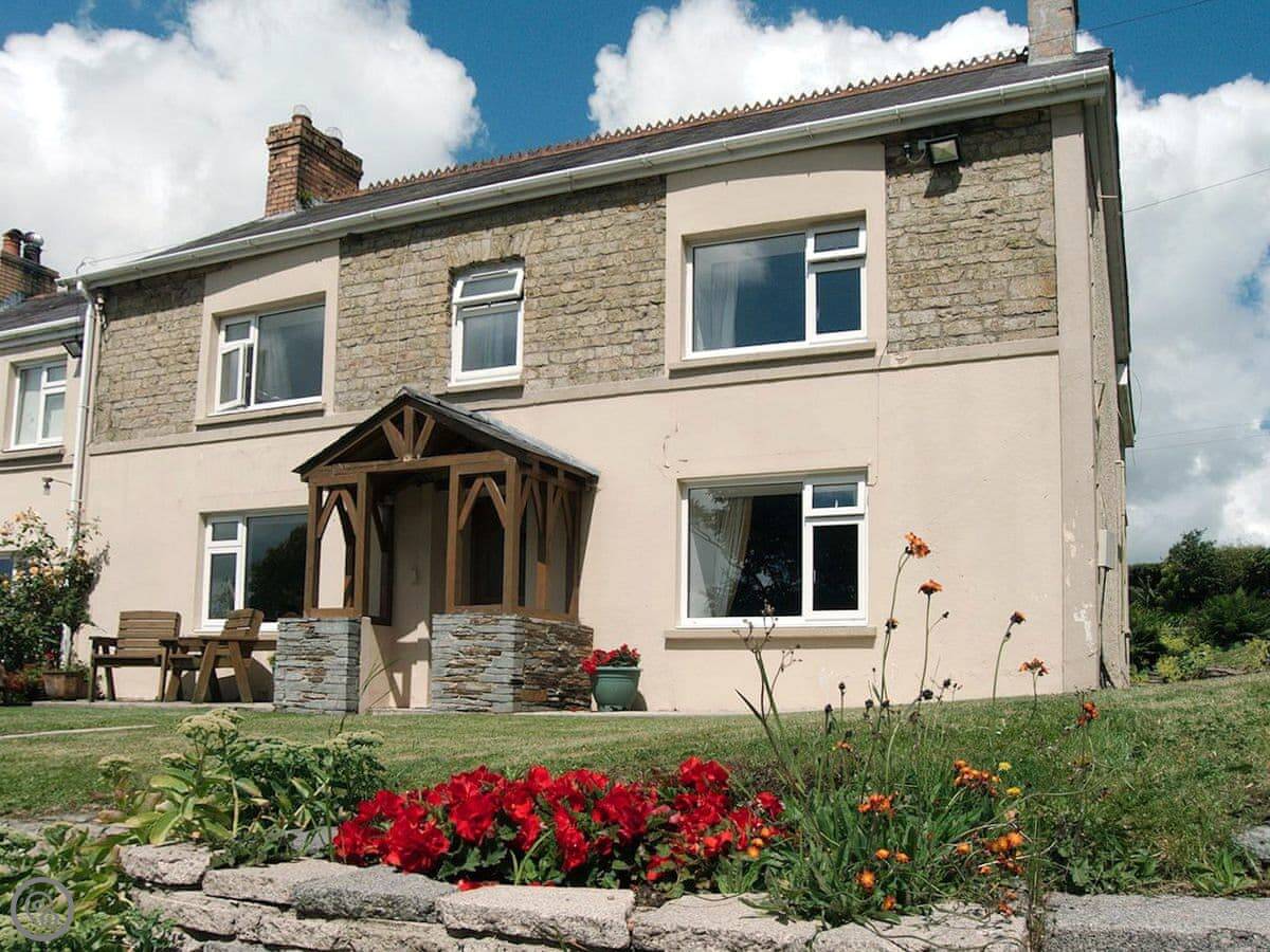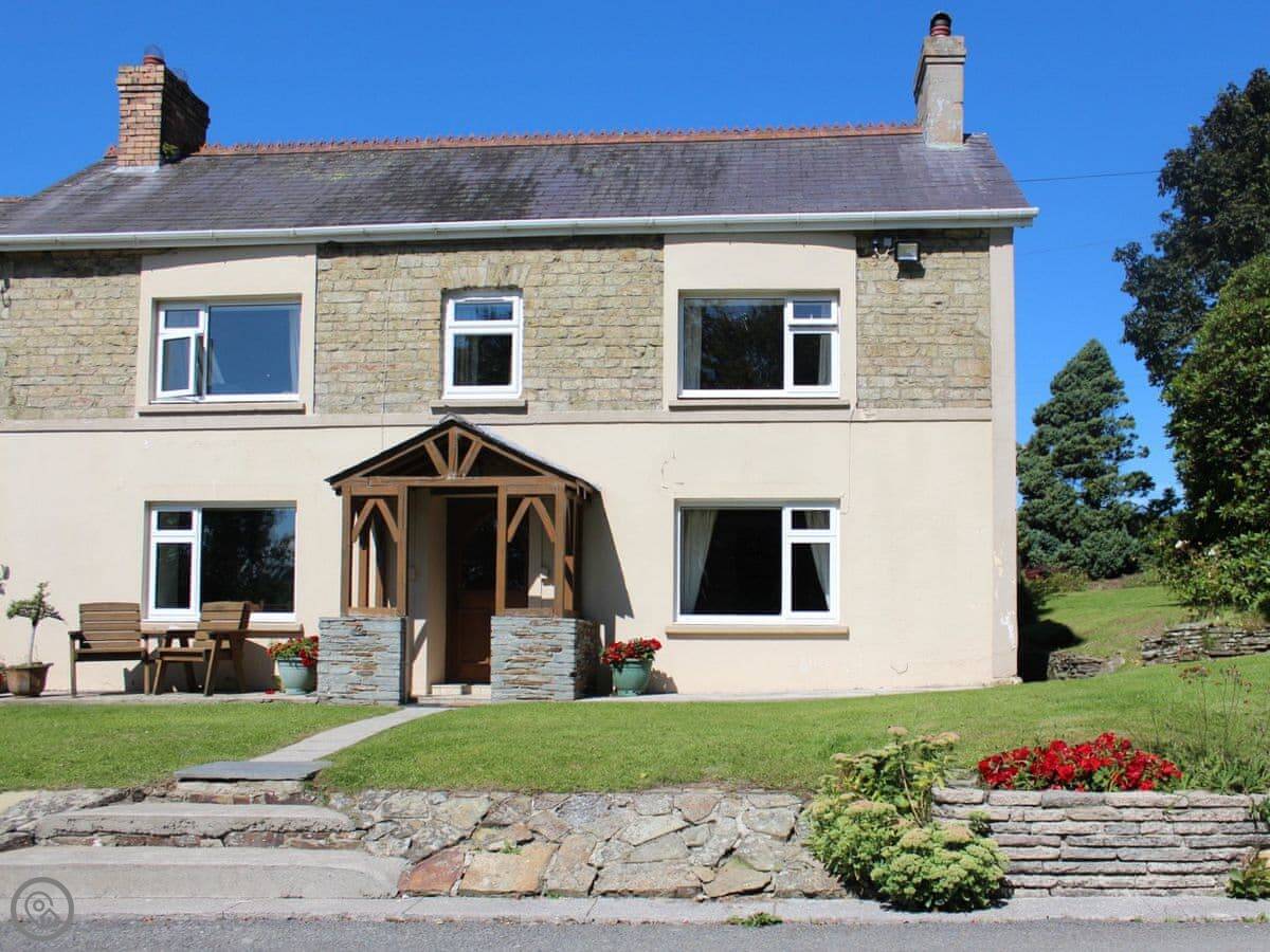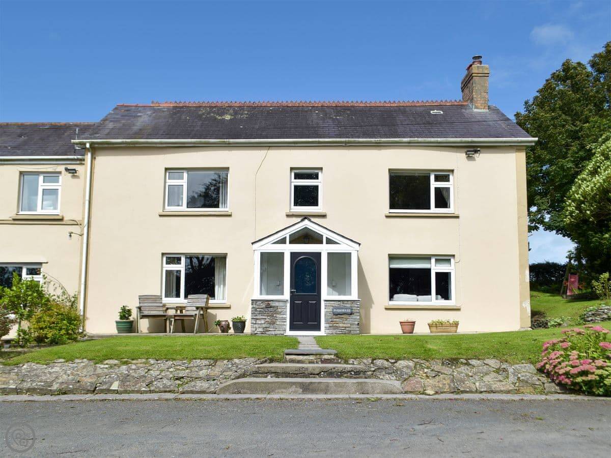 The Farmhouse is in Tanglwst, Carmarthenshire. It's on a working dairy farm down a private lane, so you'll see cows. The views are over our pond and the fields.