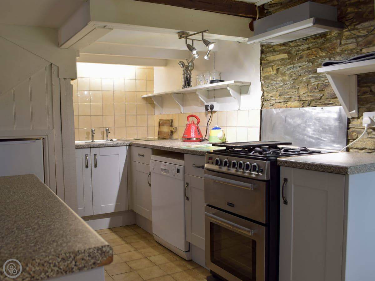 What's here: a washing machine, TV, WiFi, a cot and highchair if you need them, bedding and towels are included, and there's parking right outside. There's a patio with a BBQ. No pets, sorry.