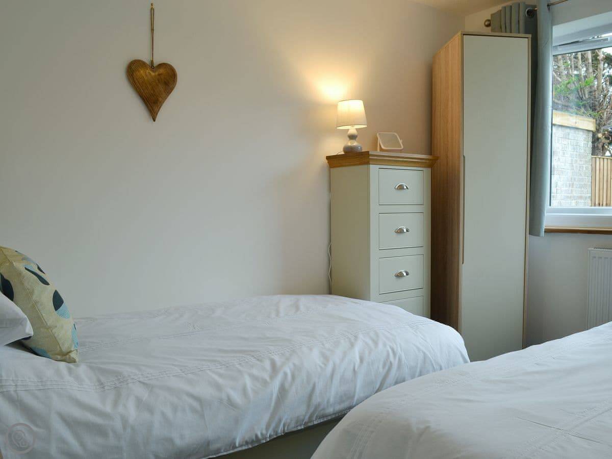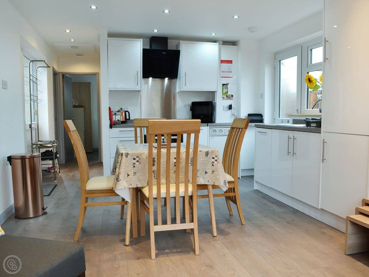 It sleeps four. Two bedrooms, one bathroom. It's got a 4 Star rating, which means it's well looked after and comfortable. The main room is open plan, so the kitchen, dining and sitting area are all together. It's very light in there.