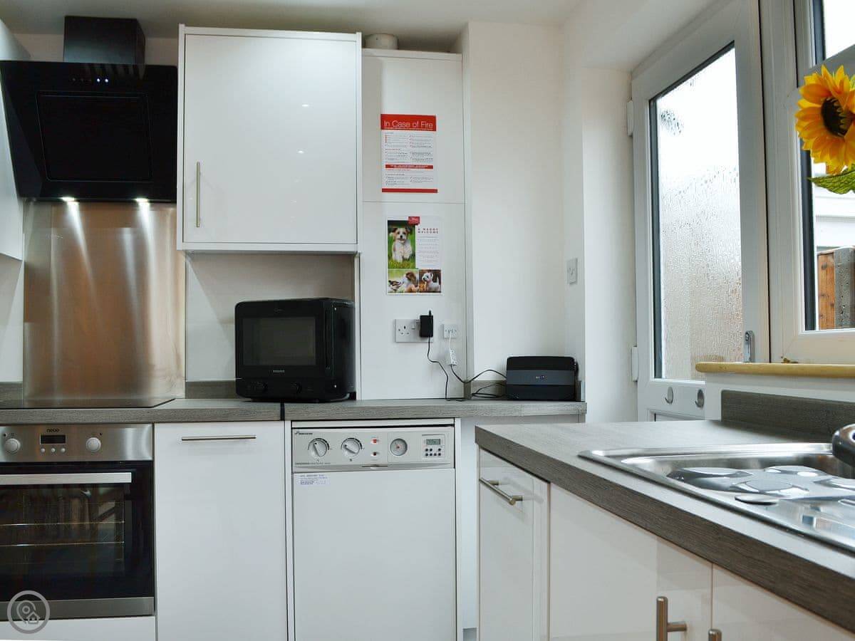 For facilities, it's got what you'd expect. Washing machine, dishwasher, WiFi, TV. Bedding and towels are included. There's a cot and a highchair if you need them. You can bring one dog.