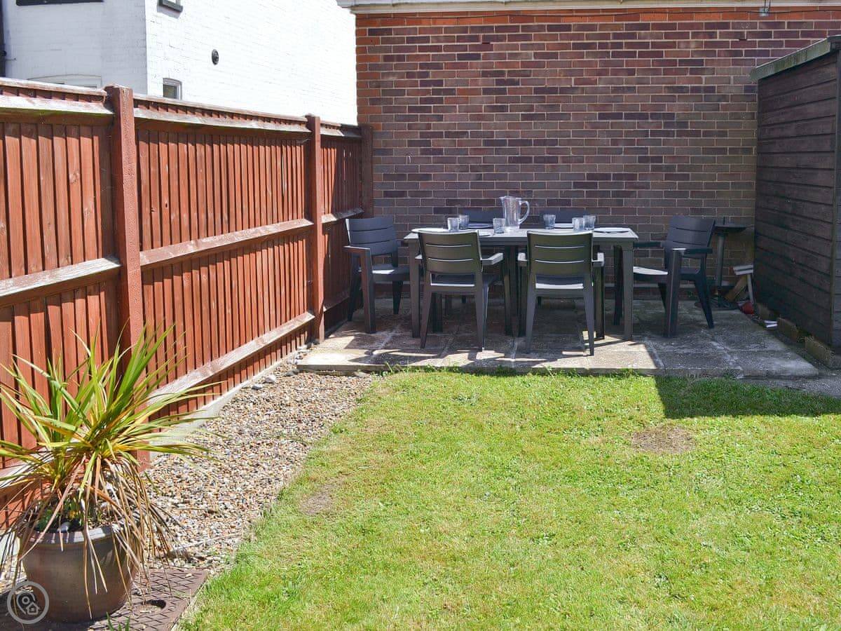 Inside it's got what you need. Washing machine, dishwasher, WiFi. TV. They provide all the bedding and towels. There's a cot and a highchair if you need them. The garden is out the back, it's small but it's yours. No pets, sorry.