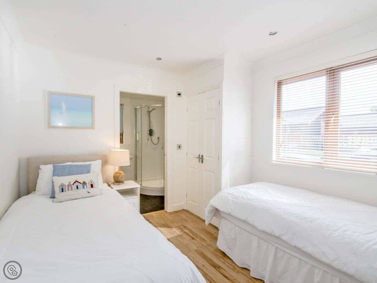 It sleeps four in two bedrooms. Both bedrooms have their own bathroom, which is handy. It's a 4 Star place, so it's comfortable and well looked after. It's all on one floor, which some people prefer. The deck outside is a good size. You can take one dog.