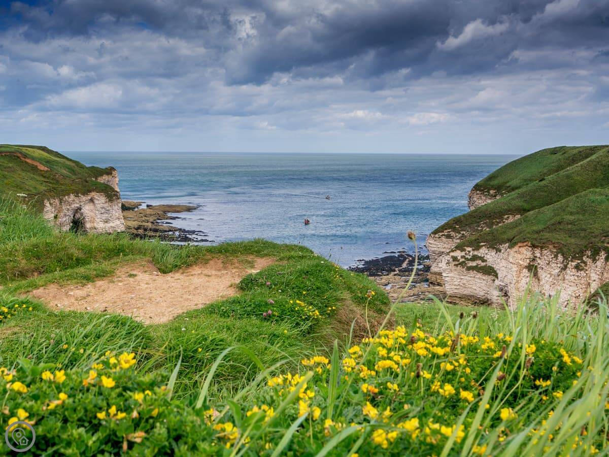 The beach is a short walk down the cliff path. Danes Dyke is a bit further along the coast, it's a wooded valley that leads to a beach. For birds, RSPB Bempton Cliffs is about a ten minute drive. You can see the puffins in season.