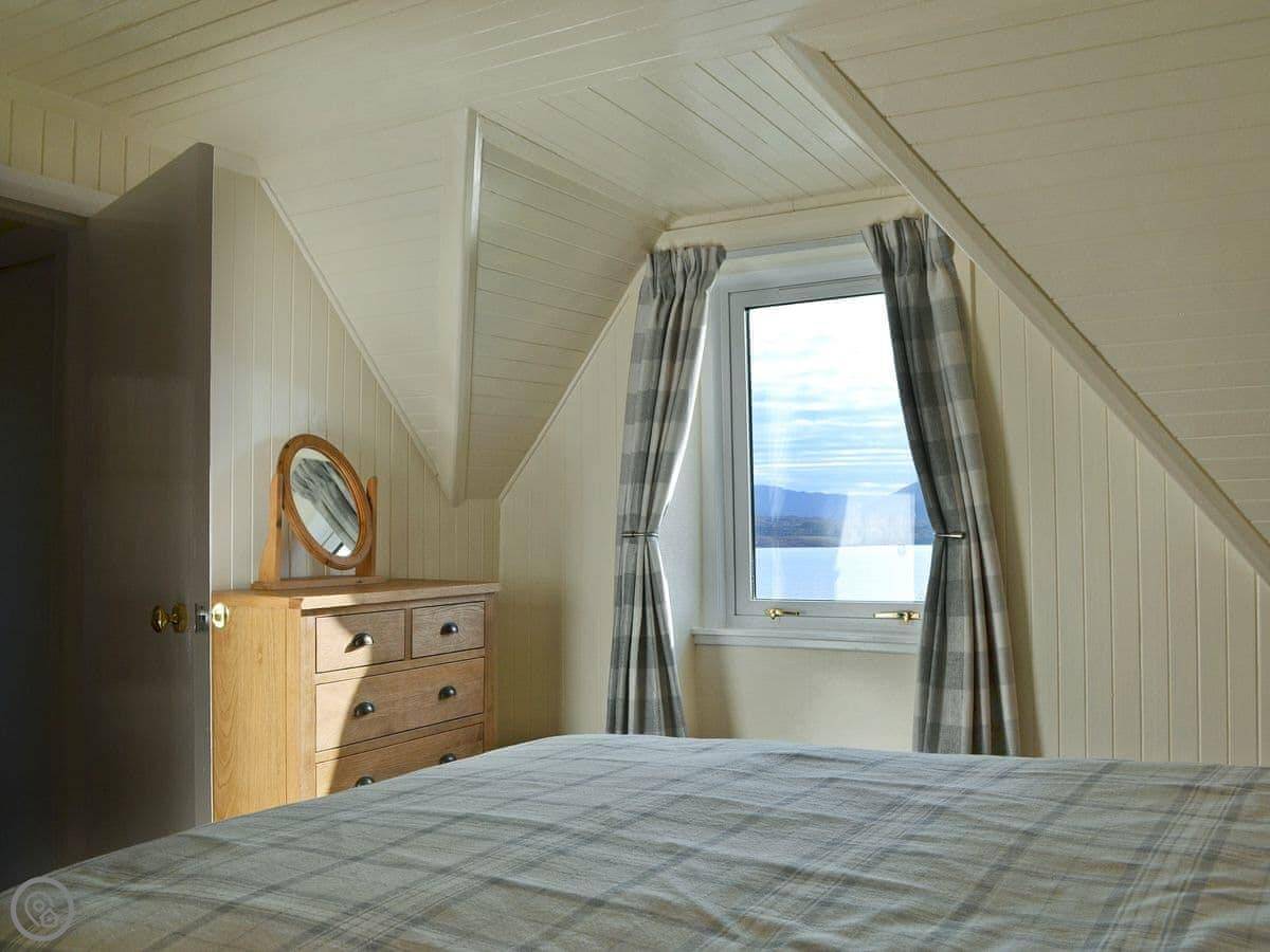 Through the living room there is a large kitchen/dining room, which has a door leading out to the garden, with space for those muddy boots and coats. In the garden there is a shed to store cycle equipment. The cottage looks out across Loch Torridon, and is at the foot of the Torridon mountains where you will find many walks. Take a stroll along the shore and spot seals, dolphins and otters, or hike up the range to see red deer, pine marten, and both golden and sea eagles. It’s a nature lover’s paradise.