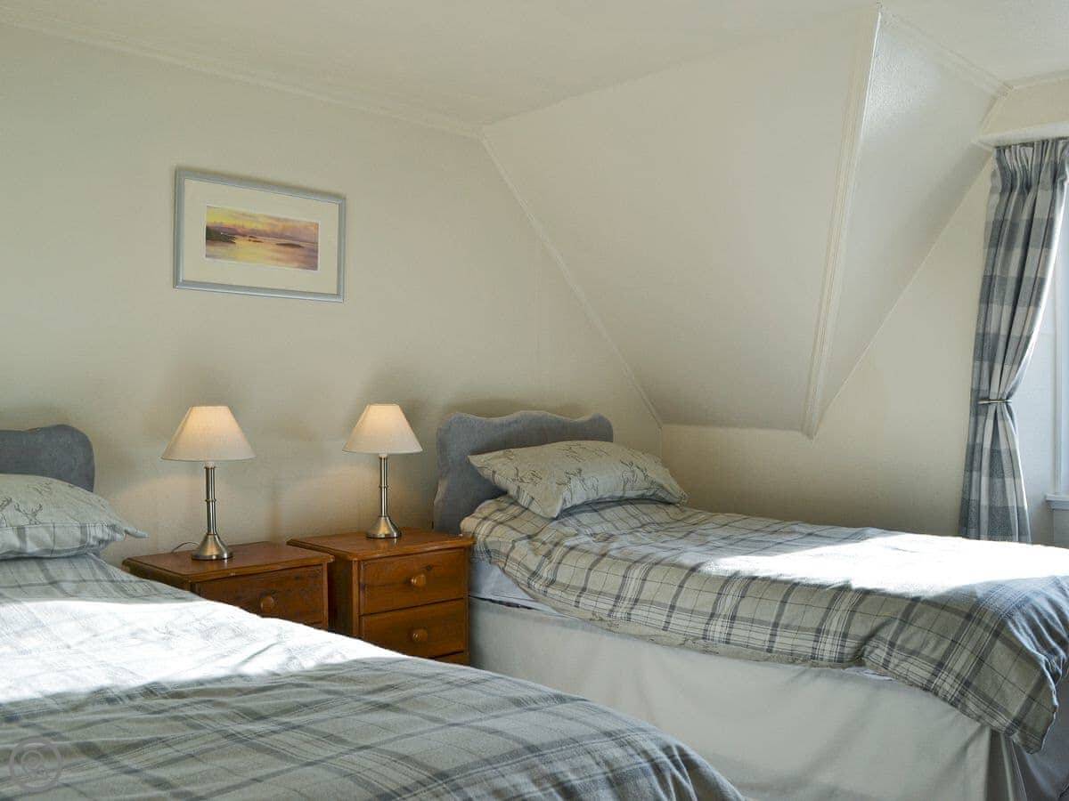 The living room is spacious and has an outstanding original fireplace with a wood burner. A large TV sits next to the window, so you can choose which one you want to sit and look at. Upstairs, there is a spacious double bedroom with original croft house style wood panelling that has been cleverly painted white to give the room a lovely bright feel. The twin room is spacious, and both bedrooms benefit from excellent views across Loch Torridon towards the mountains. There is also a separate toilet upstairs between the bedrooms. Sunnybank is a gem in one of the best Scottish Highlands locations. You won’t regret staying here.