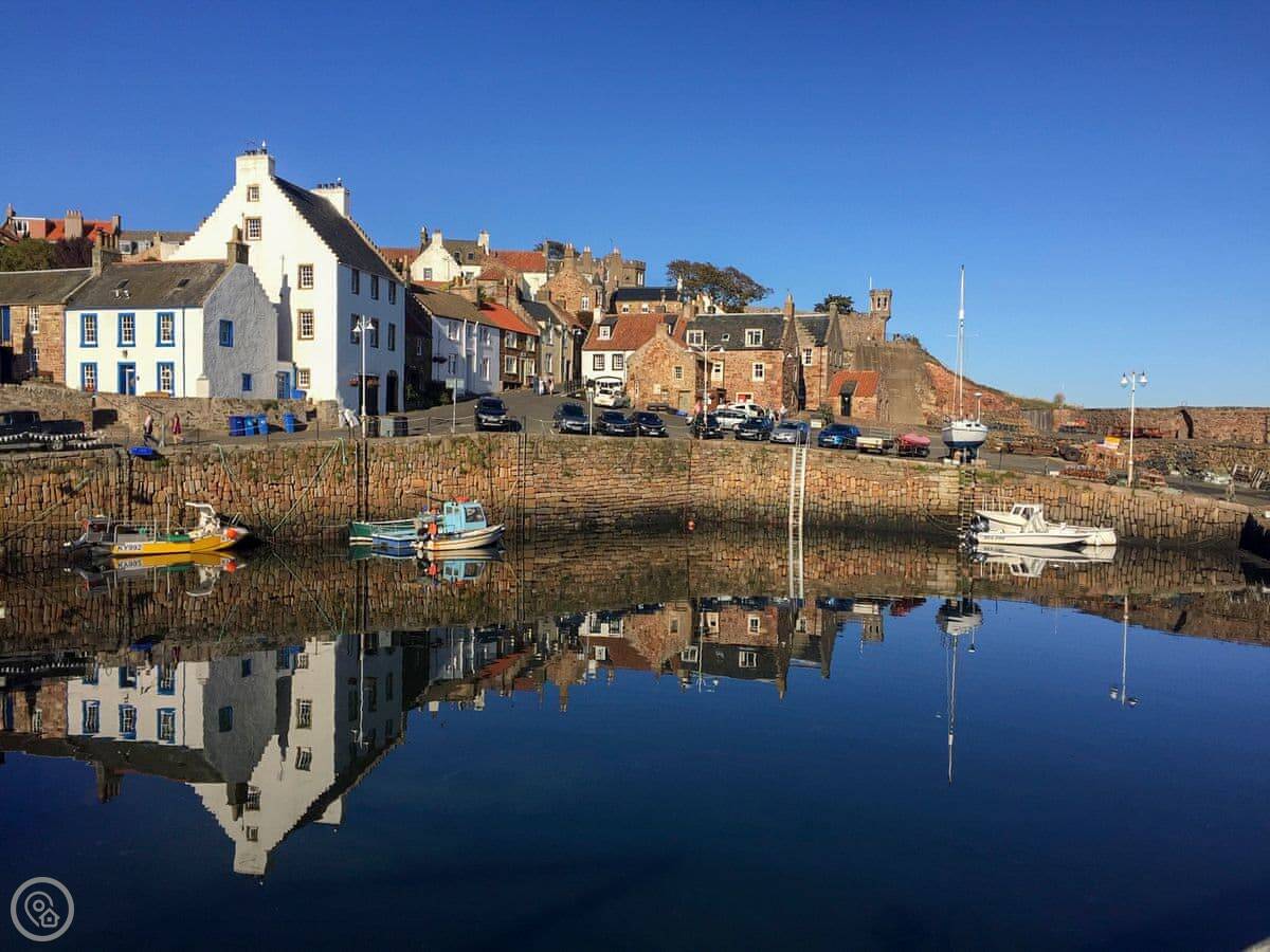You're a few minutes' walk from the harbour and a sandy beach. There's a shop, a pub, and a restaurant about 300-400 yards away. The village is nice to wander around. It's got the old wynds and alleys.