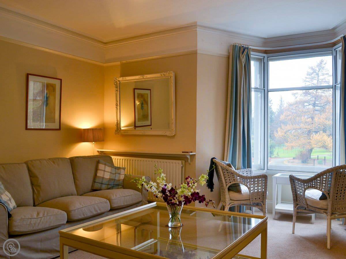 Linton is a terraced house in Keswick. It's about a five minute walk from the market square. You get a view of the river and the park from the front, and you can see Skiddaw from the windows.