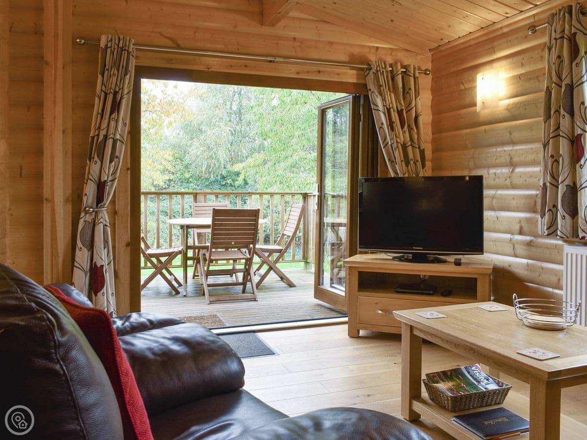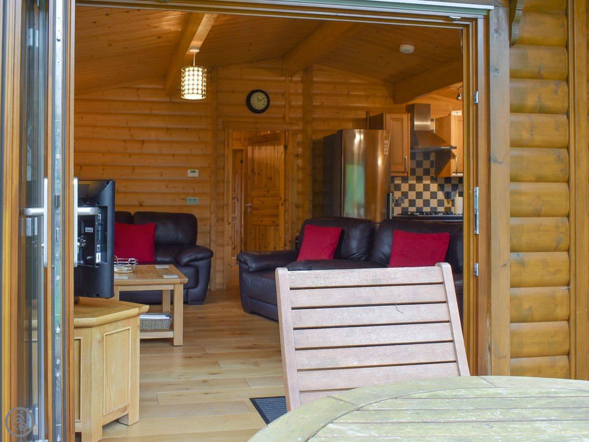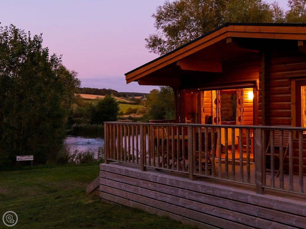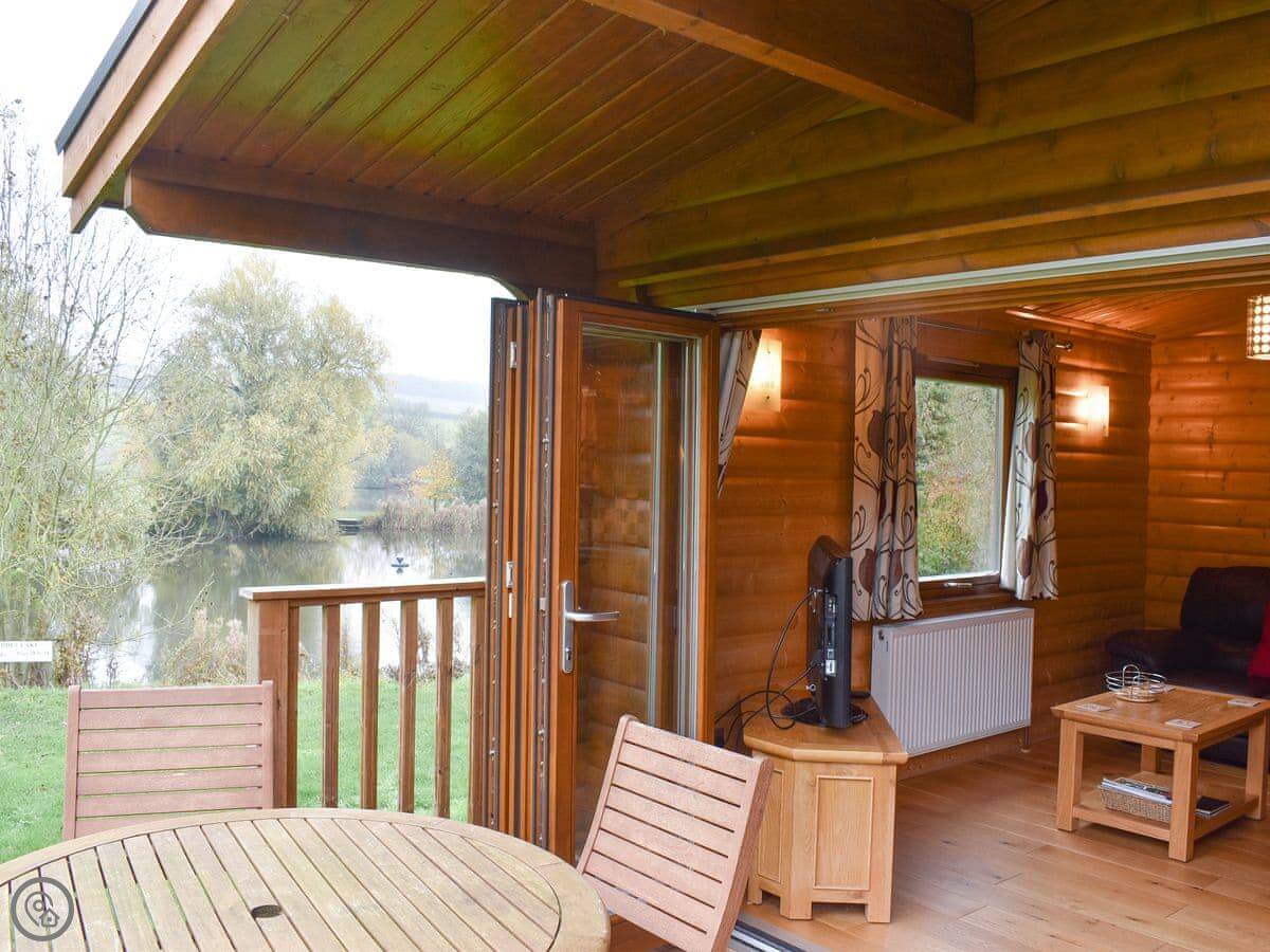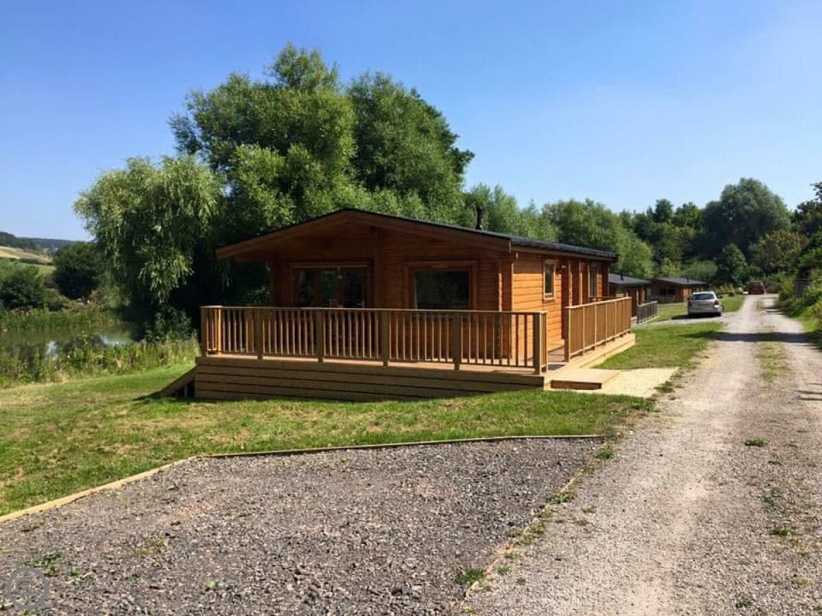 Alpine is a lodge at Viaduct Fisheries just outside Somerton. It's detached. You get your own decking area outside. The view is of the lakes. It changes with the weather, which is nice.