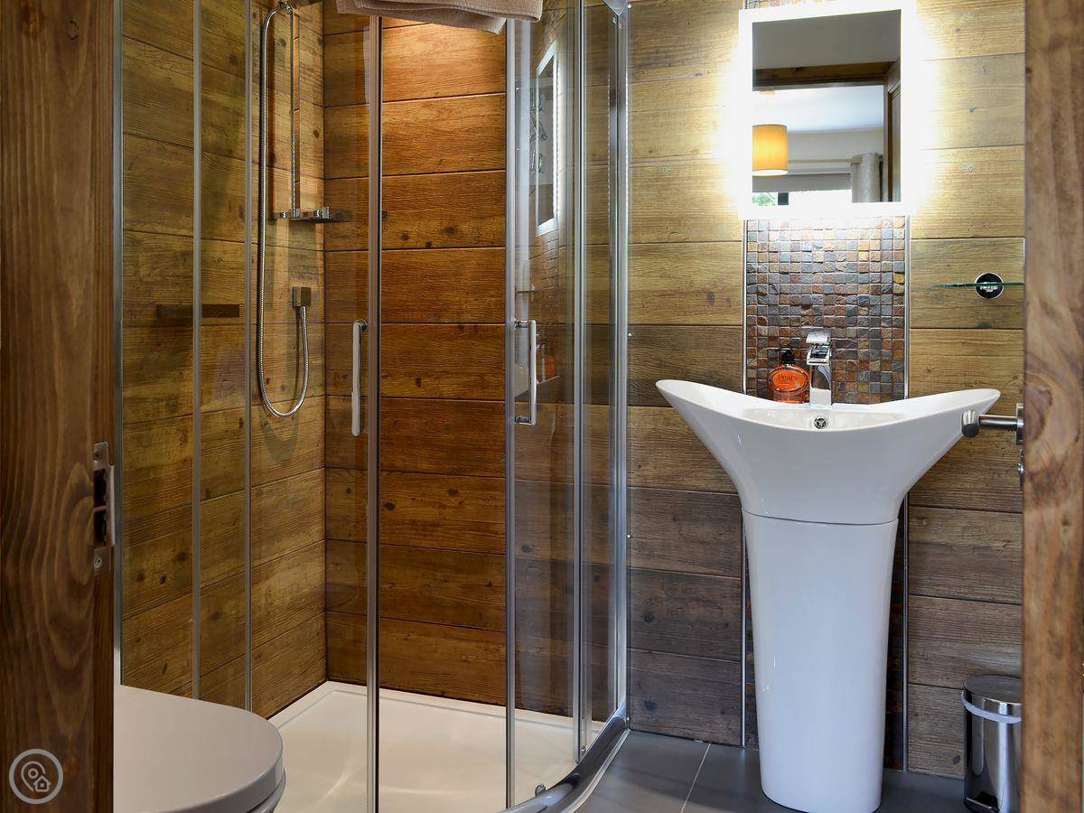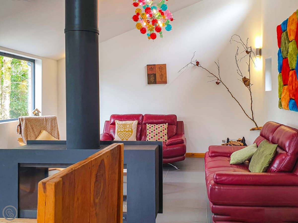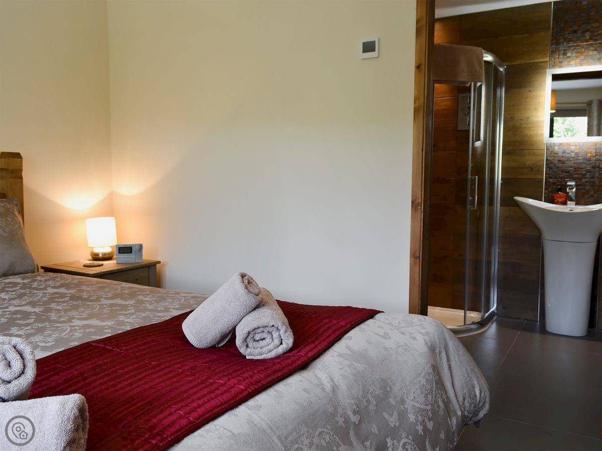 It’s for two people. One bedroom, one en-suite bathroom with a big shower. It has a fancy 5 Star rating, which means everything is new and works well. Underfloor heating, that sort of thing. There's a woodburning stove for the evenings. The stairs aren't a problem, it's all on one level.