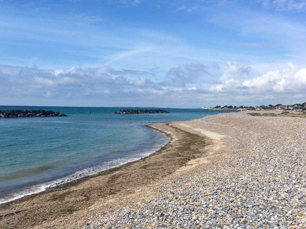 The beach is about sixty yards away. It's pebble and sand, with rock pools. It's dog friendly all year. You can walk along the beach into Bognor Regis.