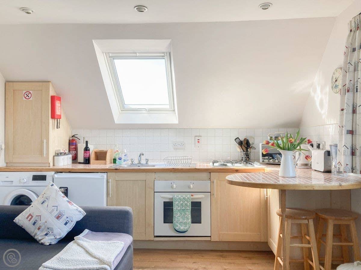 It sleeps three people. Two bedrooms, one bathroom. It's a 3 Star place, so it's clean and functional.