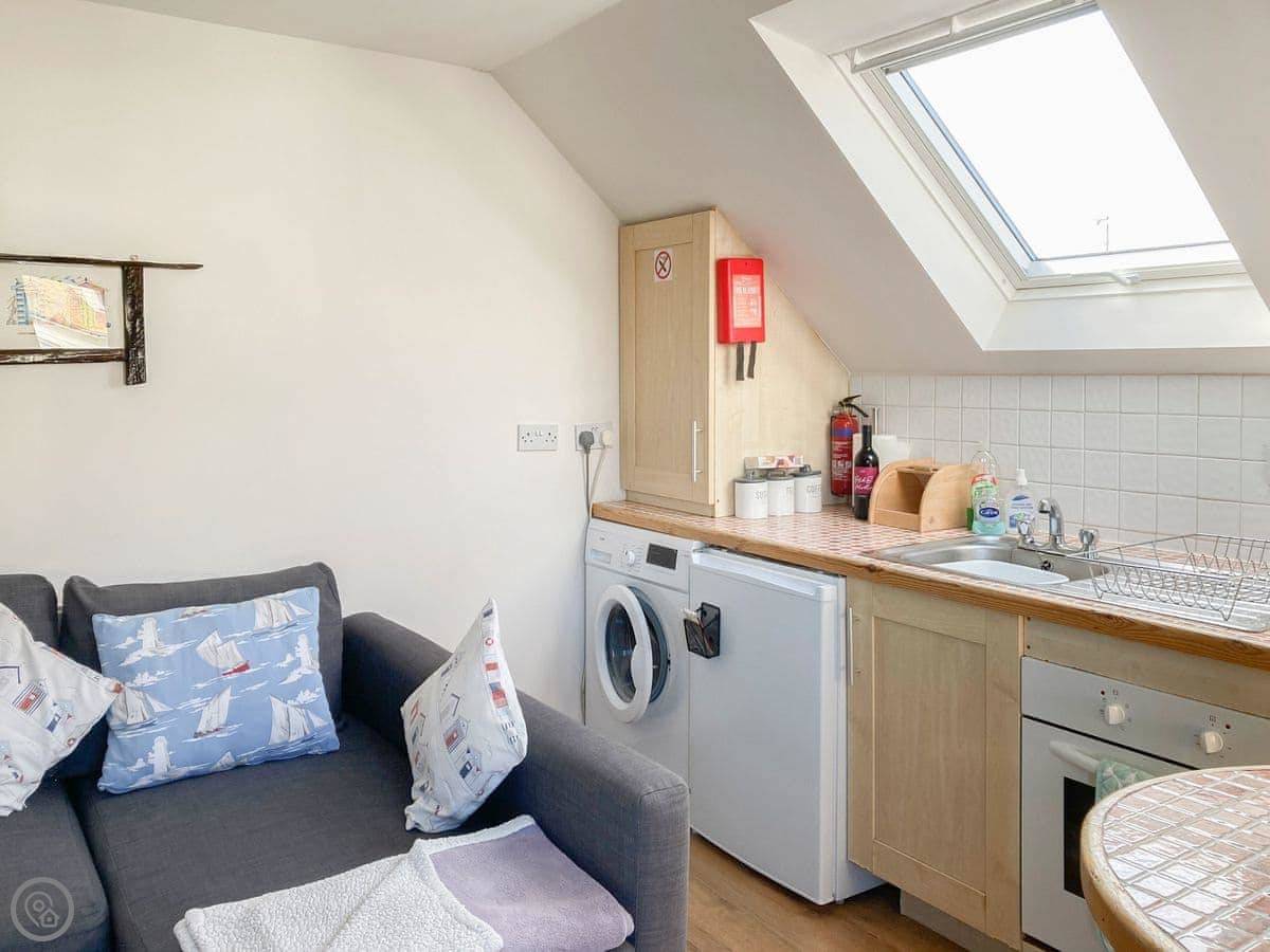 What's here: WiFi, TV, washing machine. We provide bedding and towels. There's a cot and a highchair if you need them. Parking is on site. One well-behaved dog is welcome.