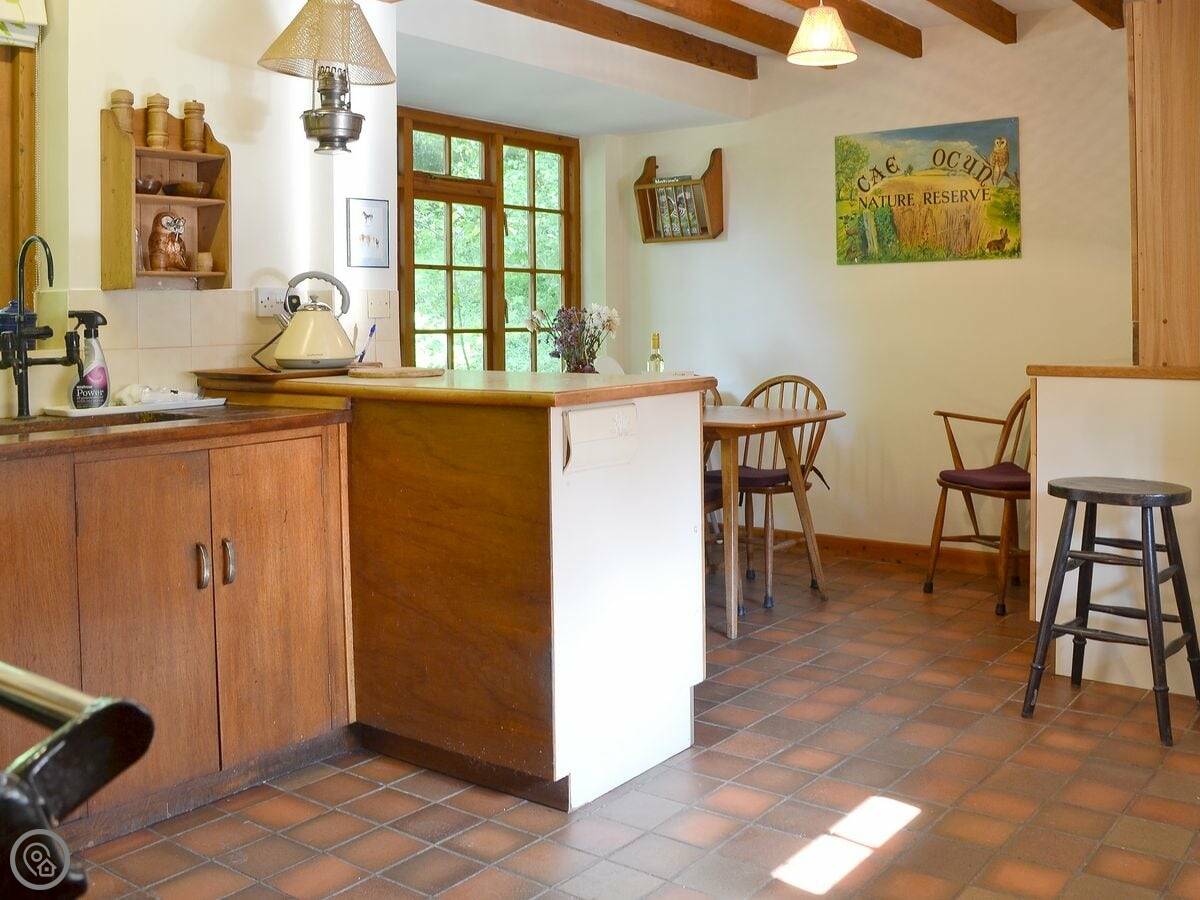 The garden is yours, with a patio. It's very quiet, surrounded by trees and small fields. This area is good for the red squirrels, so you might see them.